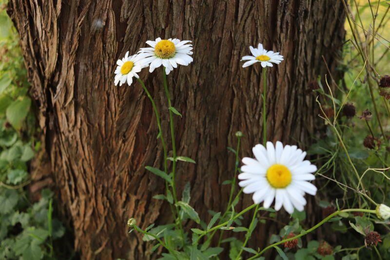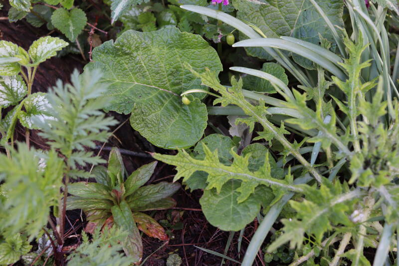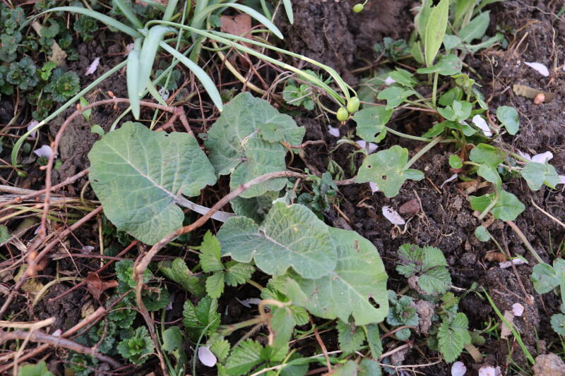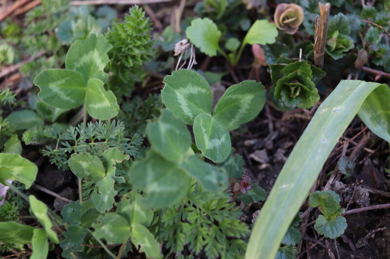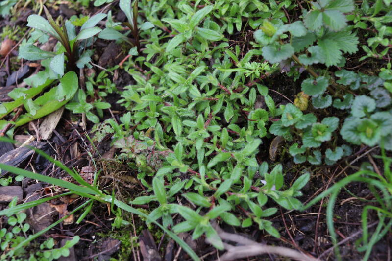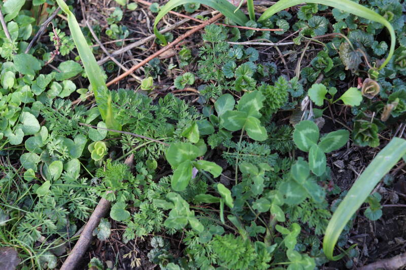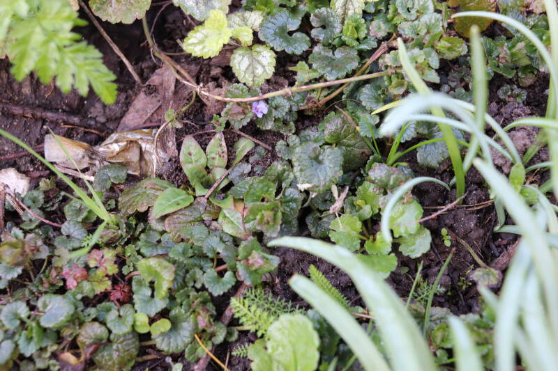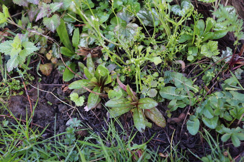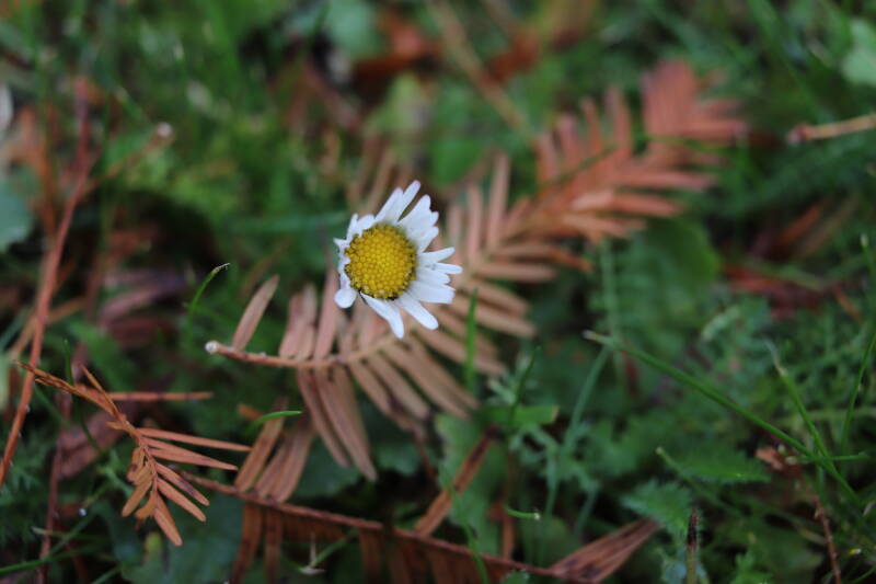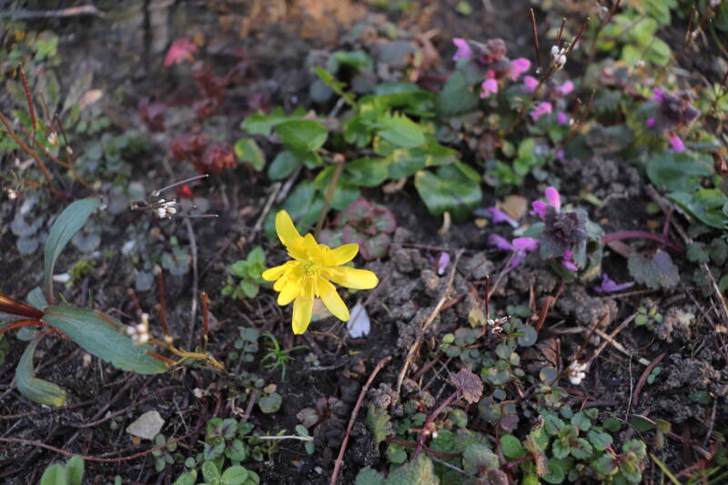 Zelfs in de maand december bloeien er nog kruidachtige planten. De temperaturen voor een winter zijn mild te noemen. Een enkele Paarse dovennetel weet het tot zover nog altijd vol te houden, maar in het gazon waren tientallen madeliefjes te bespeuren. De eerste groene bladeren van bollen lieten zich al weer rondom een boomspiegel zien. Meer kruidachtigen zien er nog groen uit, terwijl ze eerdere jaren al bovengronds zouden zijn afgestorven.