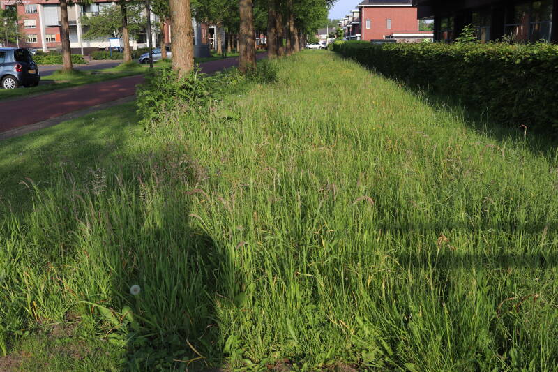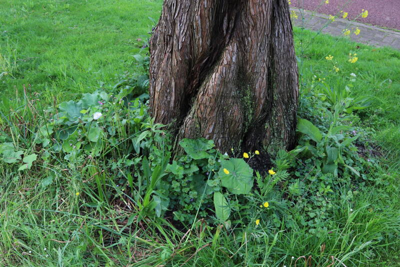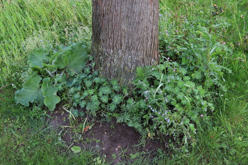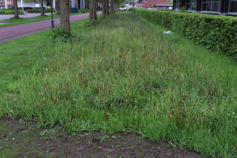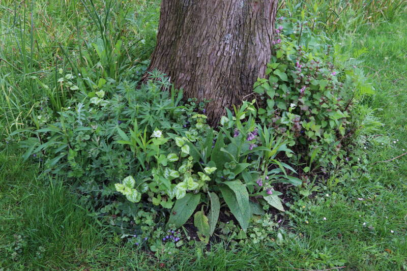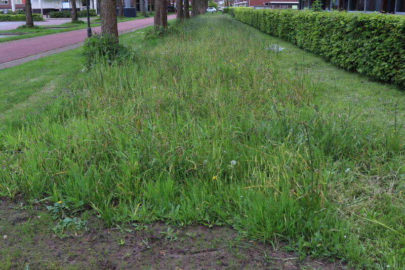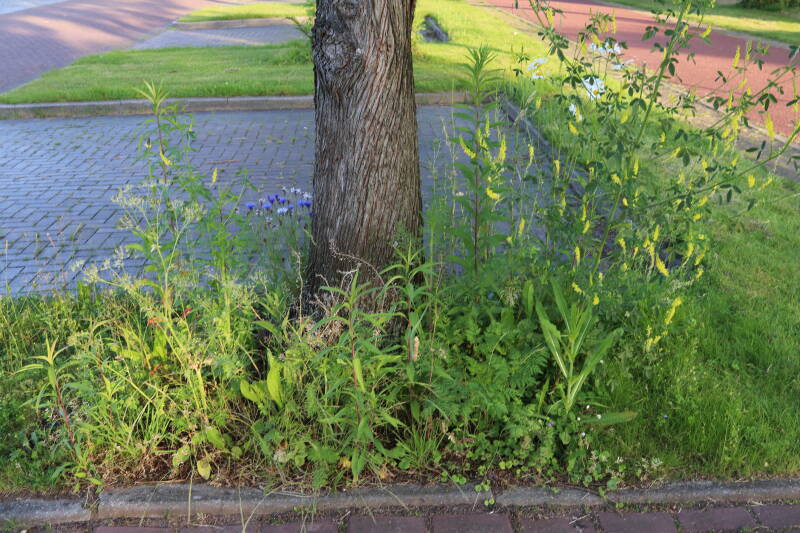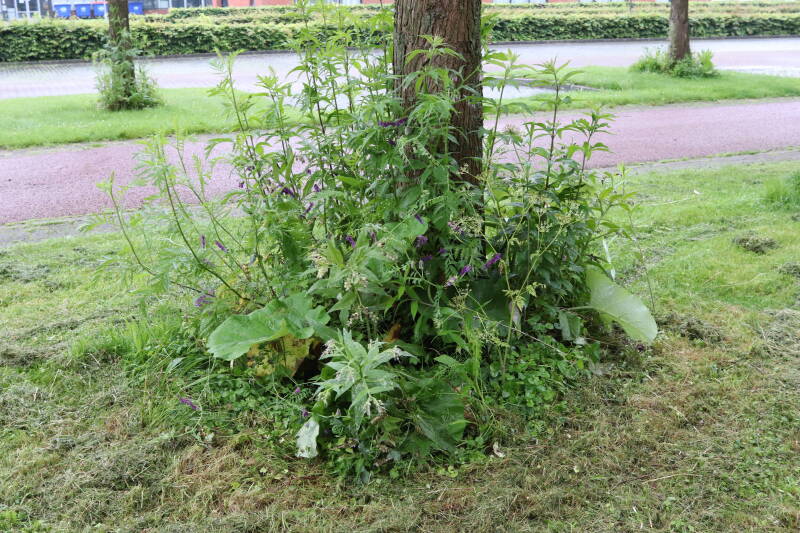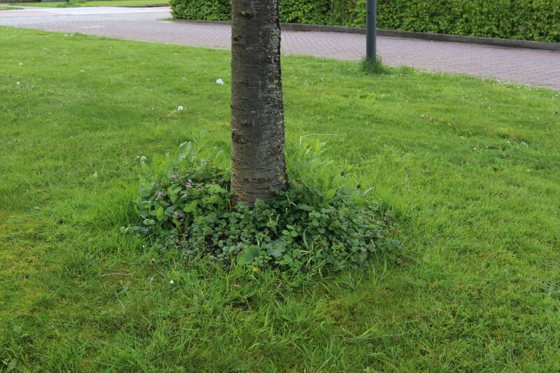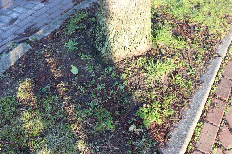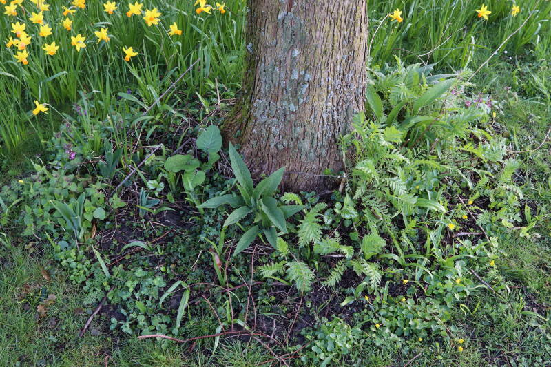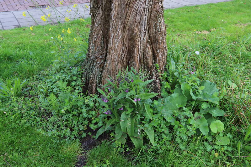 Op 20 april is al goed te zien hoe de planten zich ontwikkelen in de boomspiegels en wat de grasmaaier tot zover ongemoeid heeft gelaten. De regelmatige regenval heeft hier in grote mate aan bijgedragen. Het grondwater moet inmiddels wel op peil zijn geraakt, ondanks dat de bomen dagelijks een grote hoeveelheid water aan de grond onttrekken, en kan bij extreme weersomstandigheden straks als buffer gaan dienen. Wat een leuke bijkomstigheid is dat ik nu nog meer soorten zie die me blijkbaar eerder waren ontgaan.