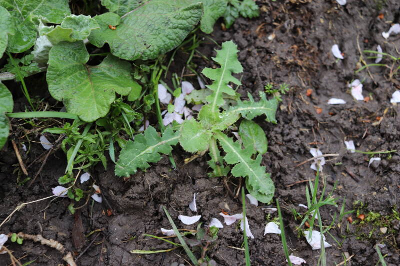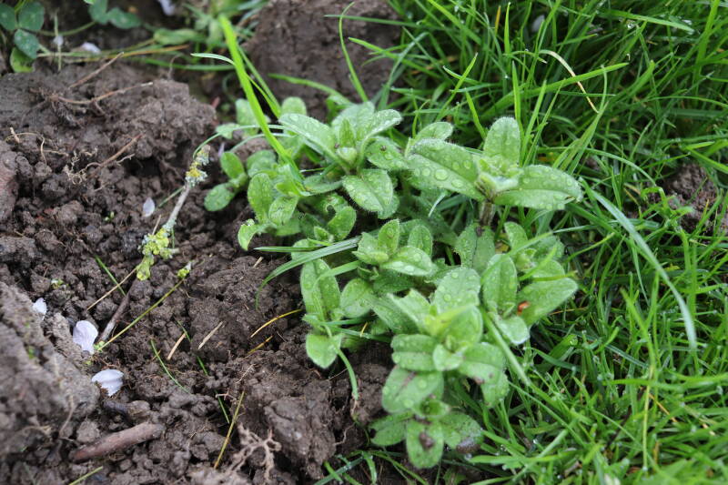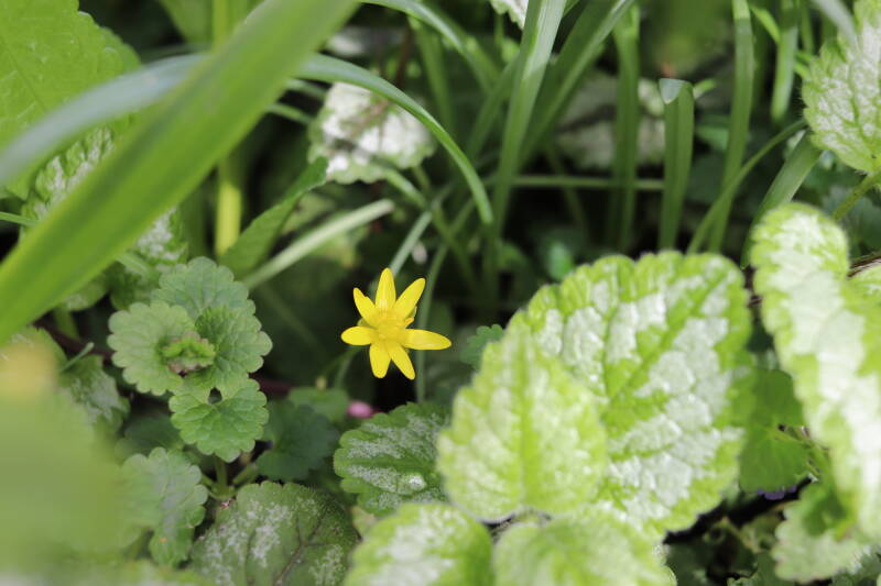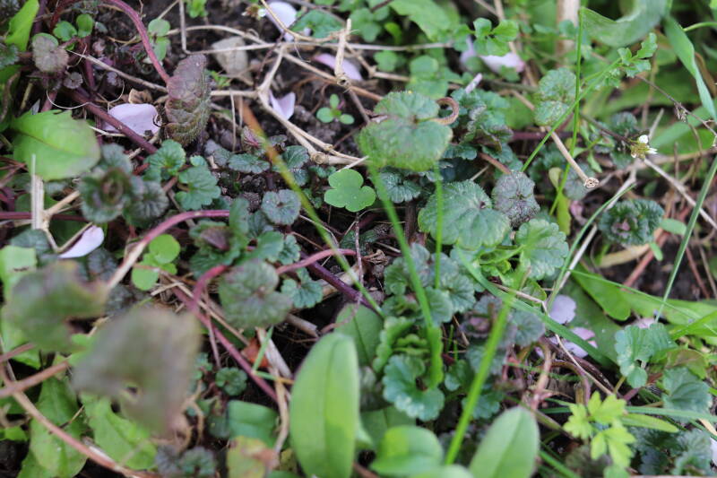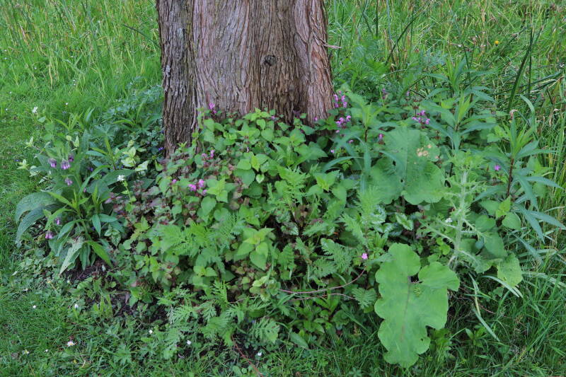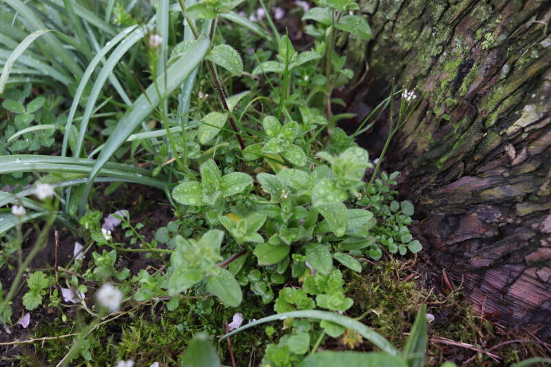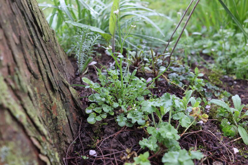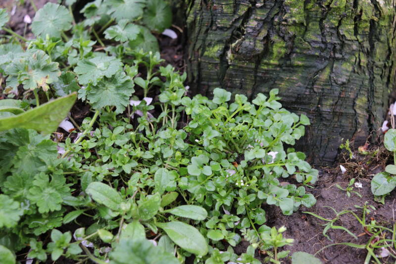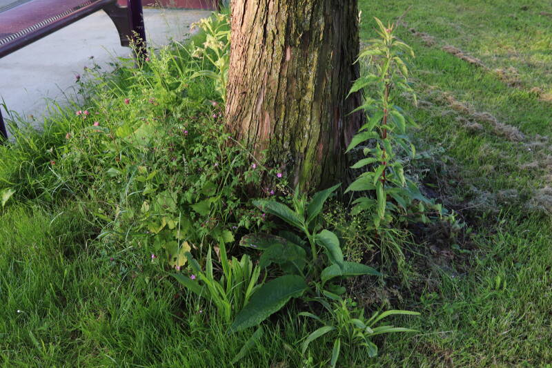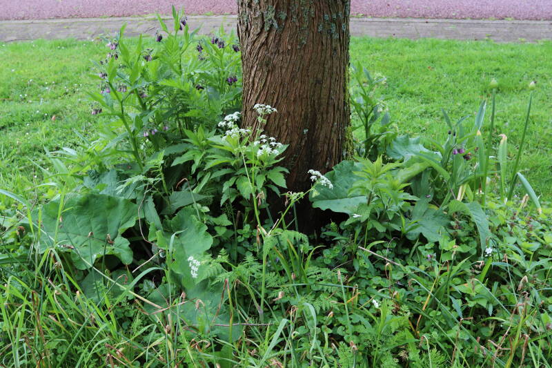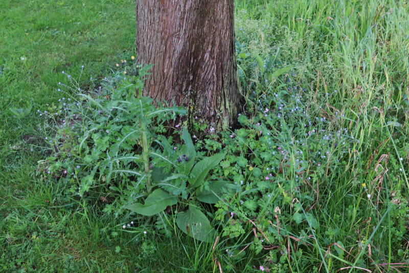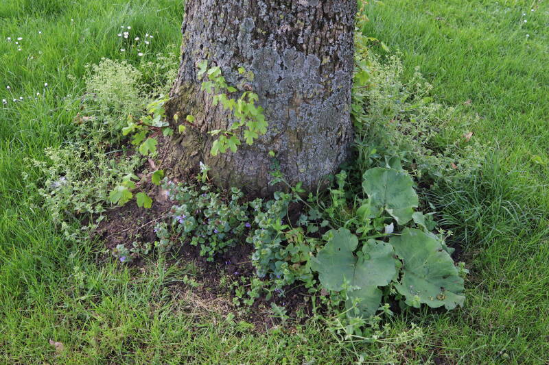 Op 20 april is al goed te zien hoe de planten zich ontwikkelen in de boomspiegels en wat de grasmaaier tot zover ongemoeid heeft gelaten. De regelmatige regenval heeft hier in grote mate aan bijgedragen. Het grondwater moet inmiddels wel op peil zijn geraakt, ondanks dat de bomen dagelijks een grote hoeveelheid water aan de grond onttrekken, en kan bij extreme weersomstandigheden straks als buffer gaan dienen. Wat een leuke bijkomstigheid is dat ik nu nog meer soorten zie die me blijkbaar eerder waren ontgaan.
