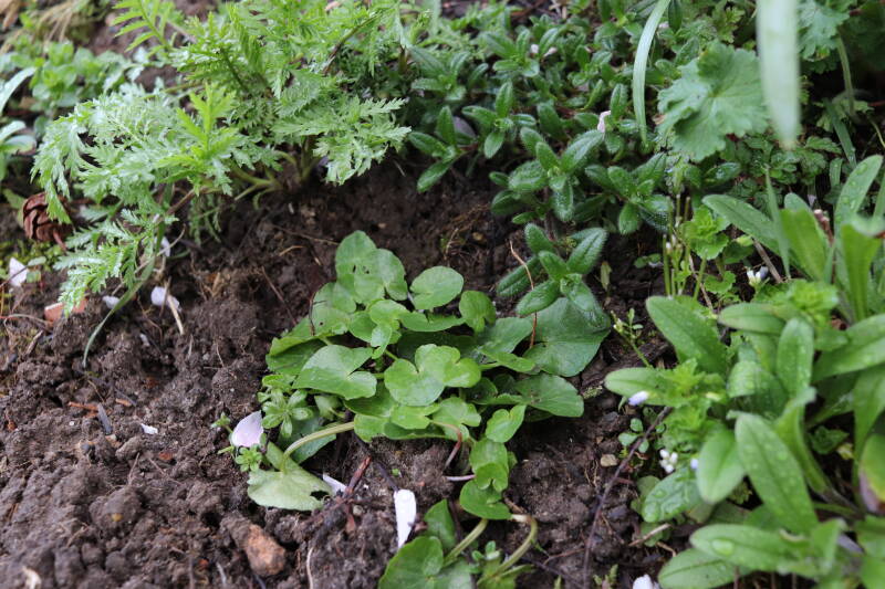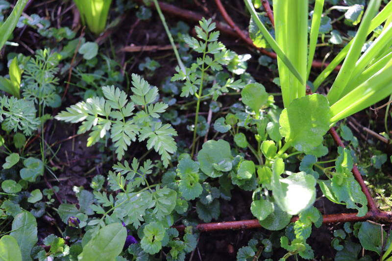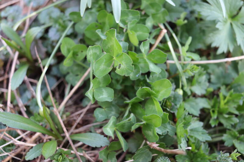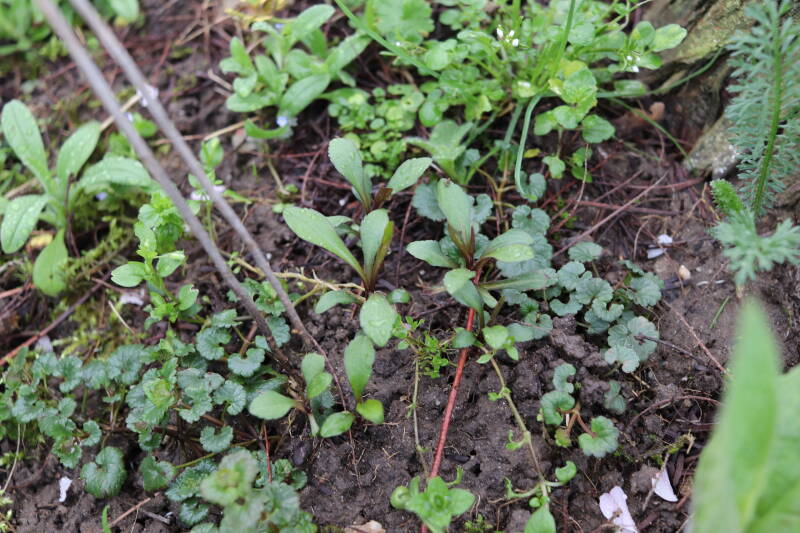 Halverwege maart is goed te zien hoe de planten in de diverse boomspiegels zich ontwikkelen en beter herkenbaar worden. Wat een aangename verrassing is dat ik soorten herken die ik niet rondom alle bomen had geplant, maar eerder wel gezaaid. Misschien was ik te snel met mijn oordeel over het resultaat van mijn zaaiwerk en waren de verwachtingen voor de natuur eenvoudig te hoog om realistisch te zijn.