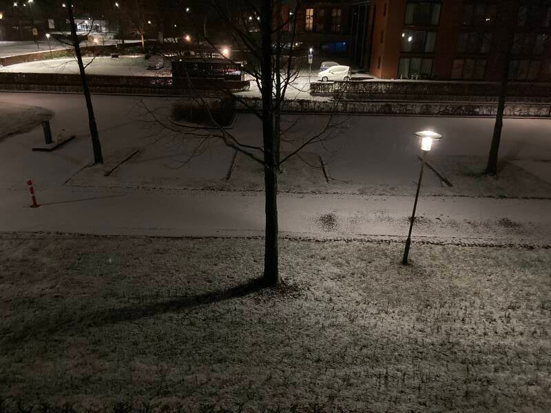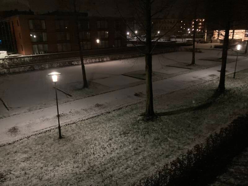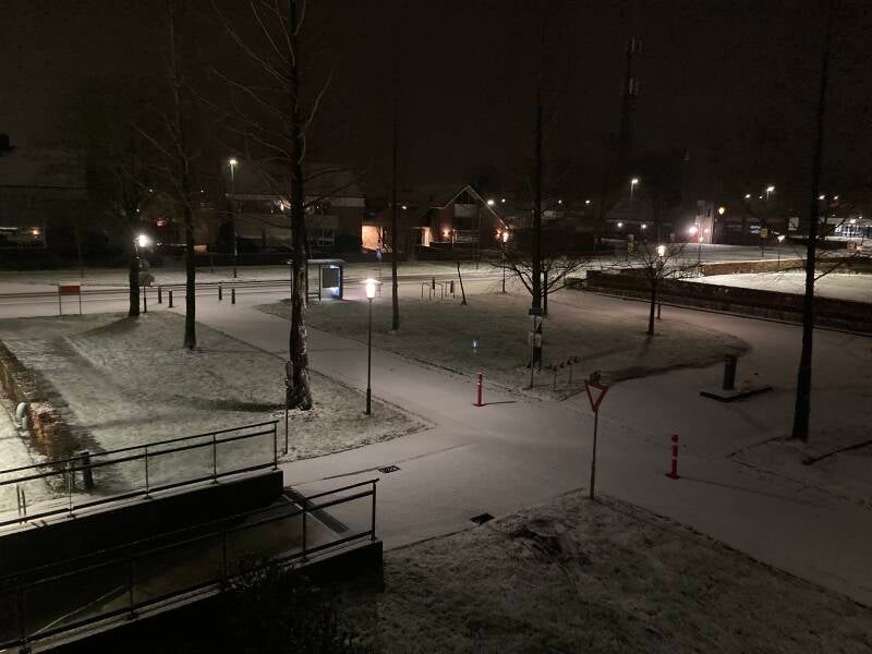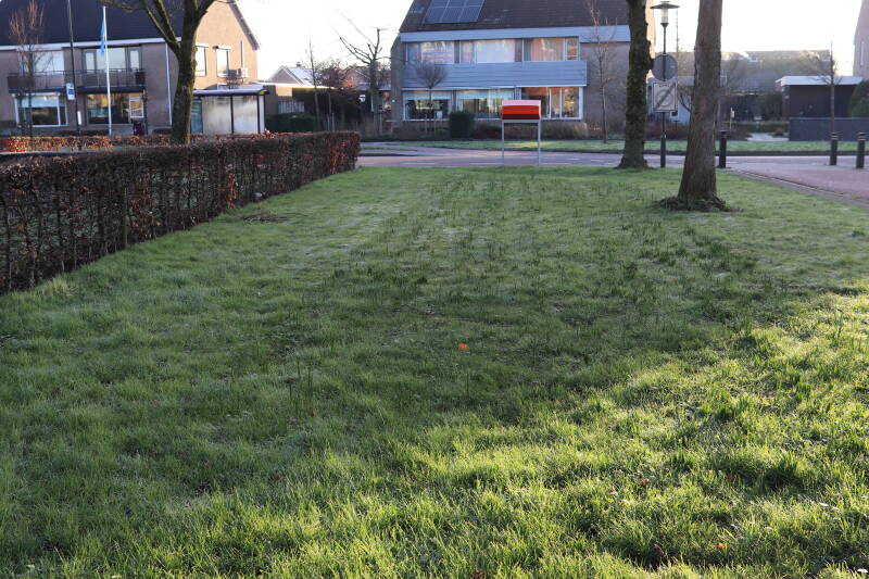 Half januari zorgde de natuur voor een wit dekbed. De donkere punten van de Narcissen steken al duidelijk zichtbaar af tegen de sneeuw. Op het fietspad is nog het strooipatroon van het zout te zien dat medewerkers van de buitendienst tijdens een preventieve actie van de gladheidsbestrijding hebben achter gelaten.