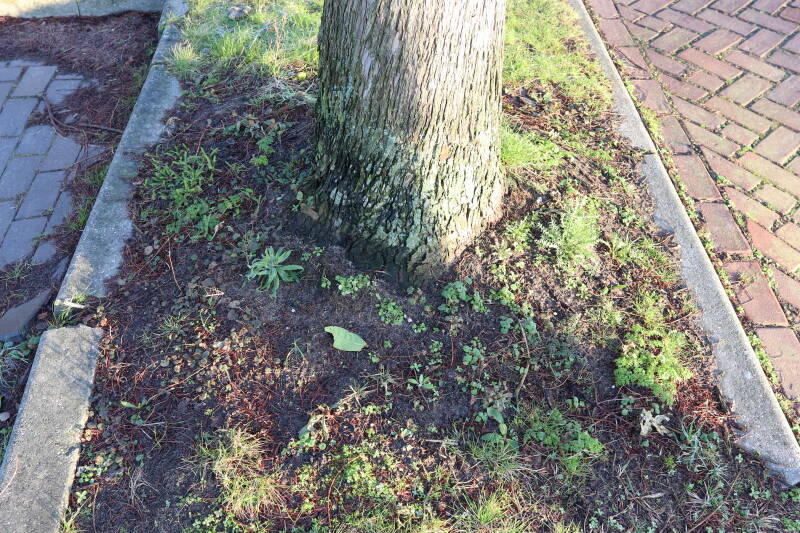 In de maand november heb ik toch nog bloeiende soorten in en rondom de boomspiegels aangetroffen. Vaak genoten deze planten enige bescherming tegen de elementen, terwijl veel soortgenoten langzaam bezig zijn om bovengronds af te sterven.
