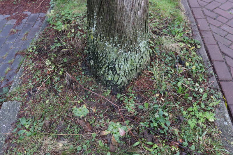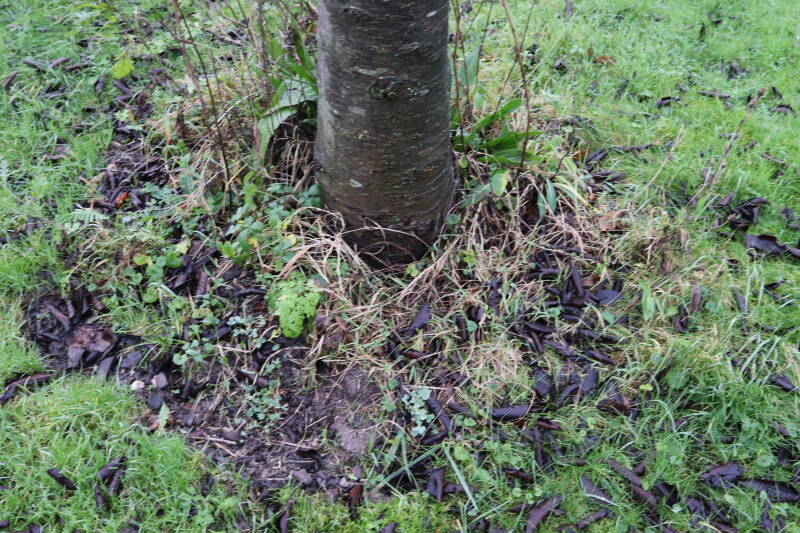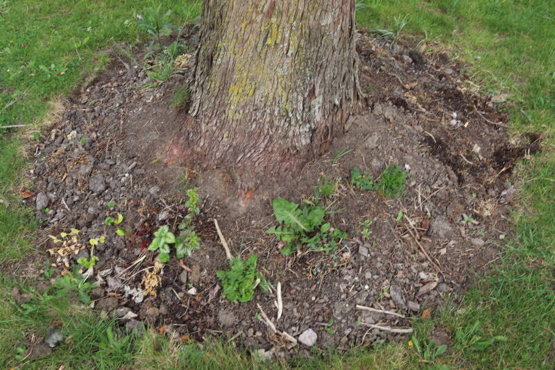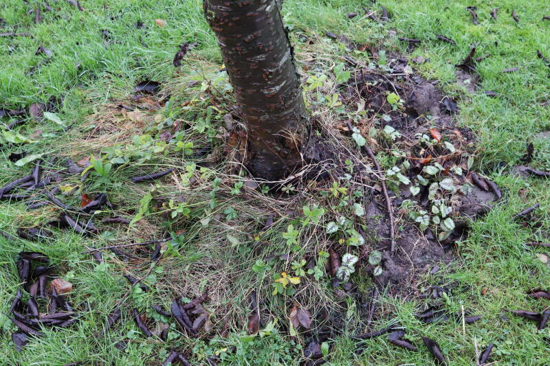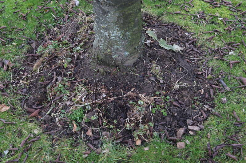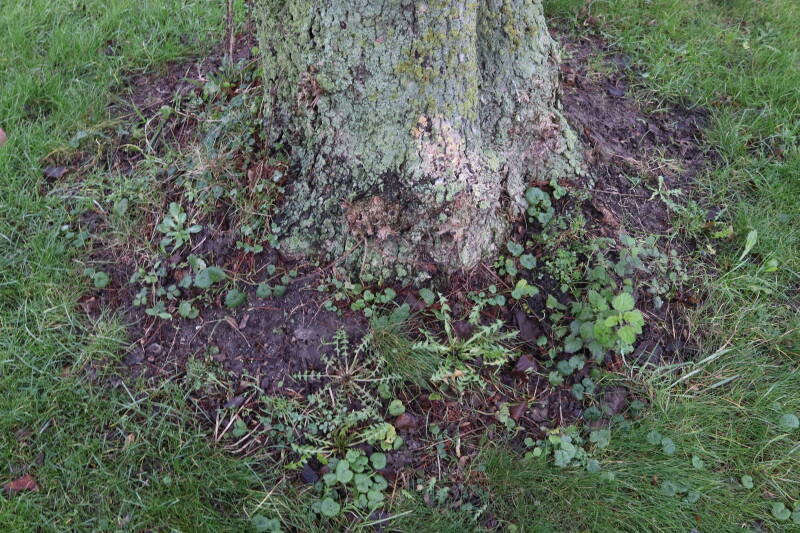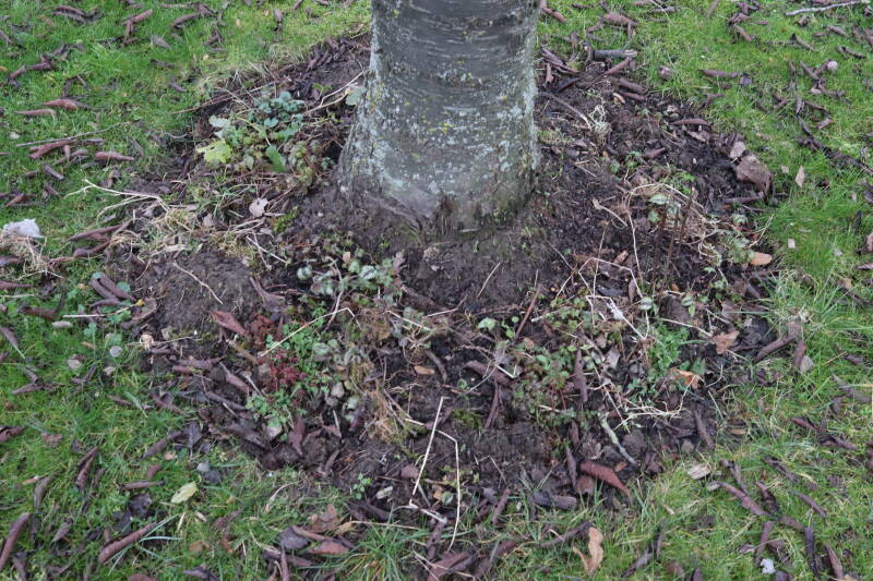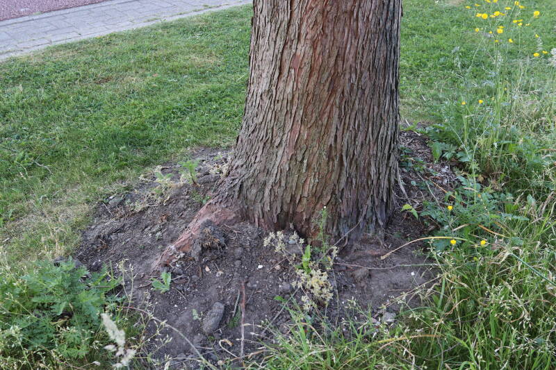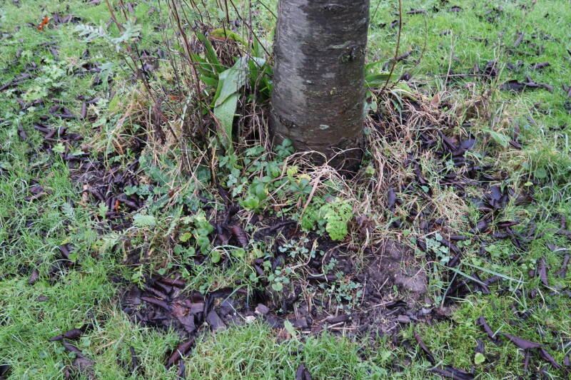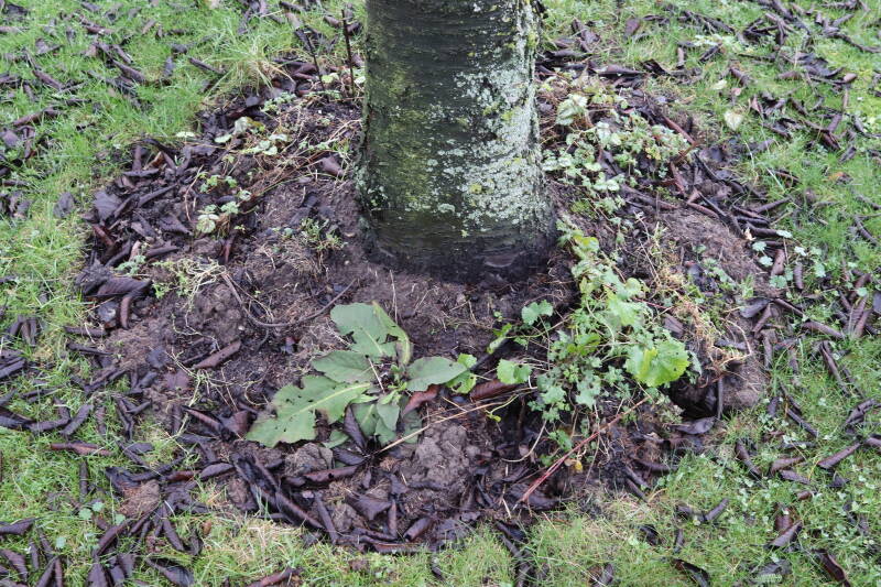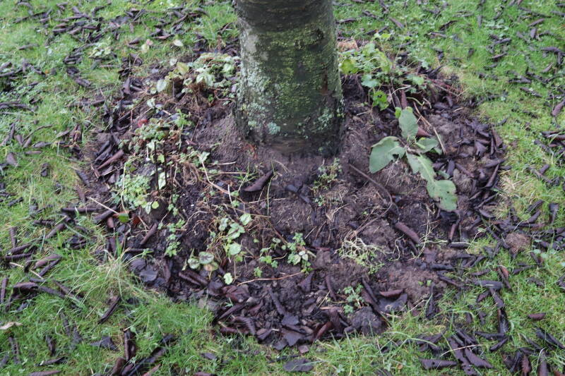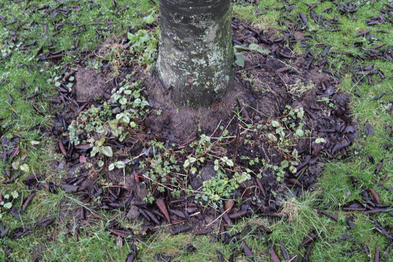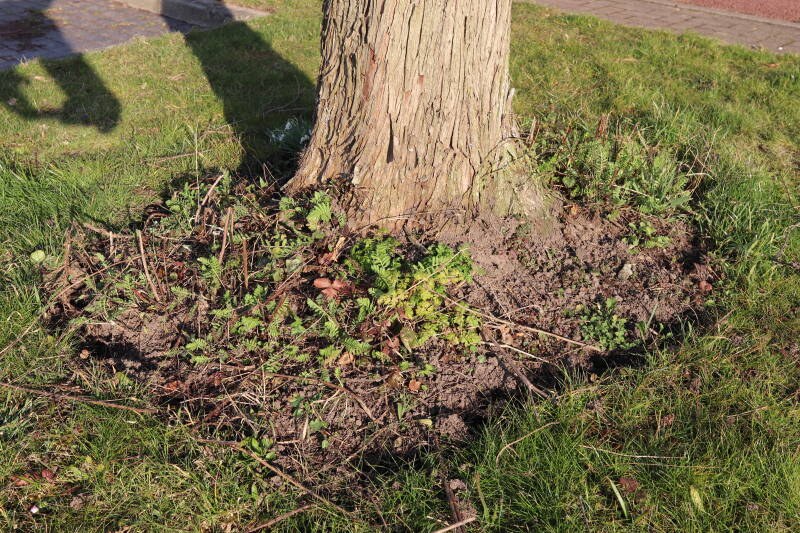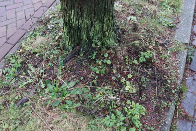 Aanwezig voor het verwijderen van het gras in de boomspiegel.