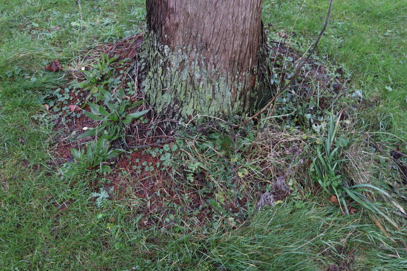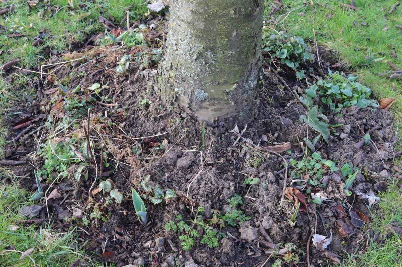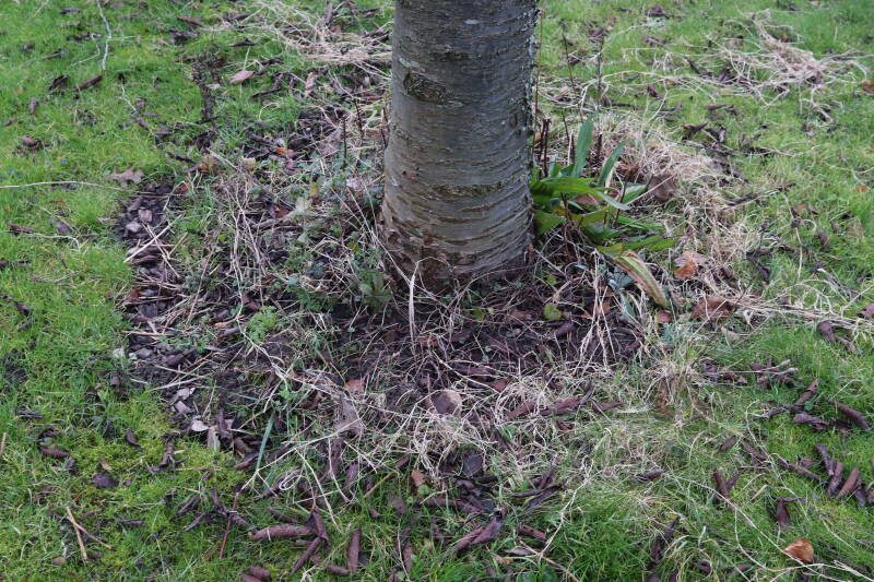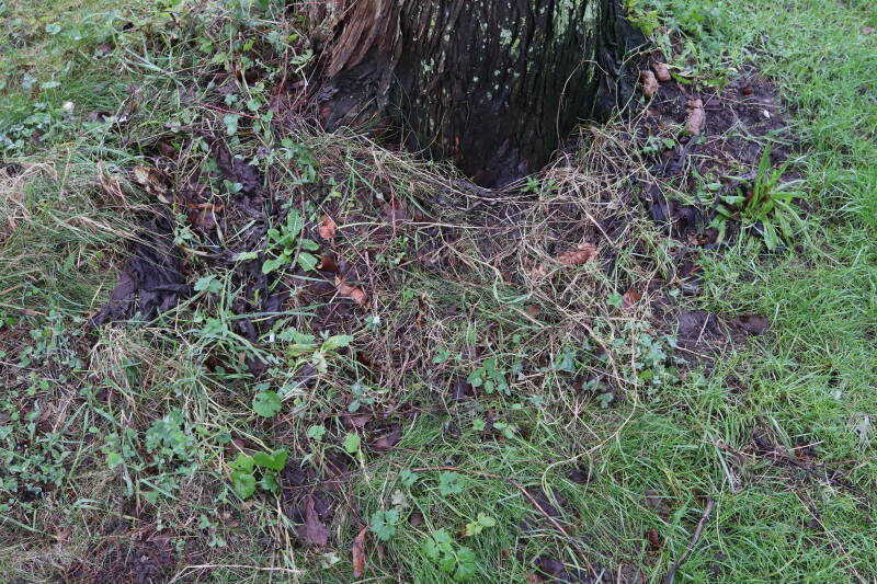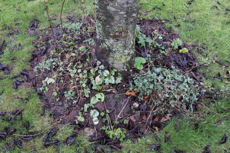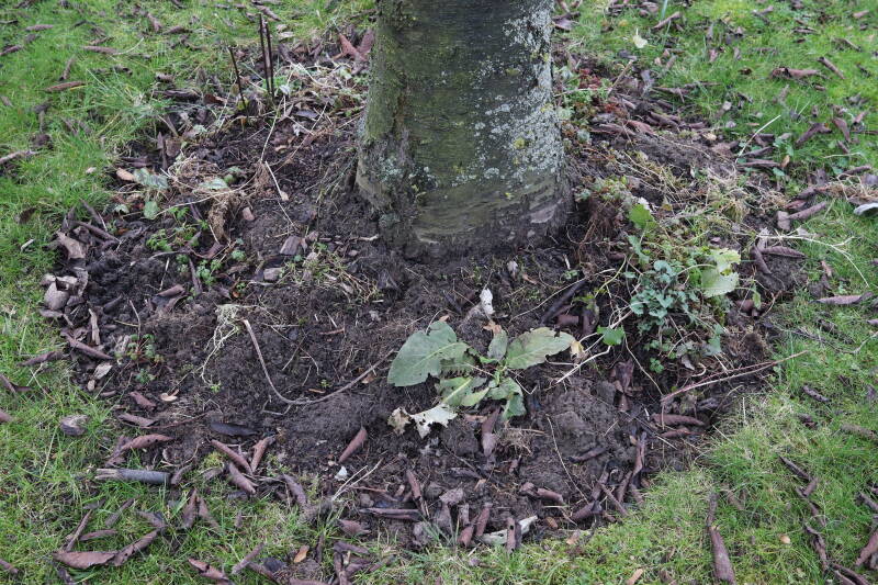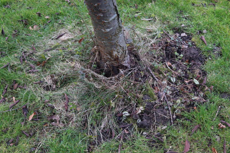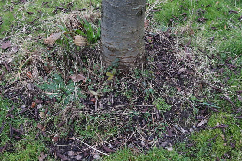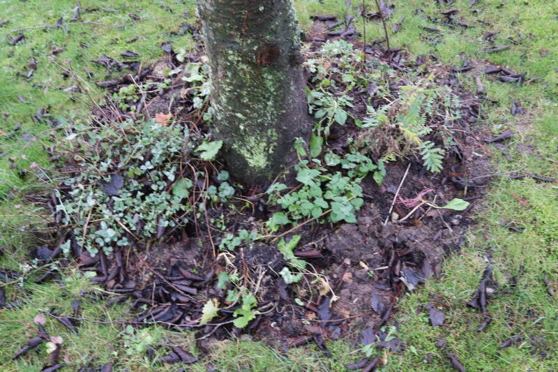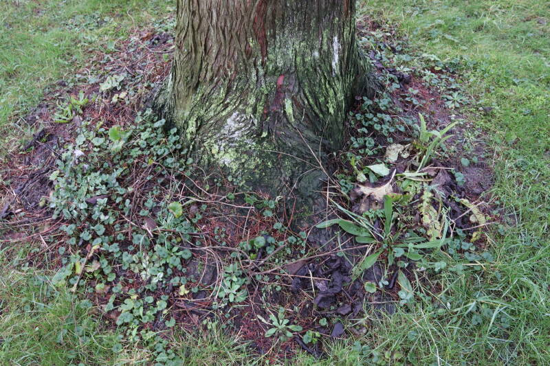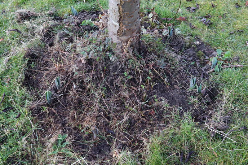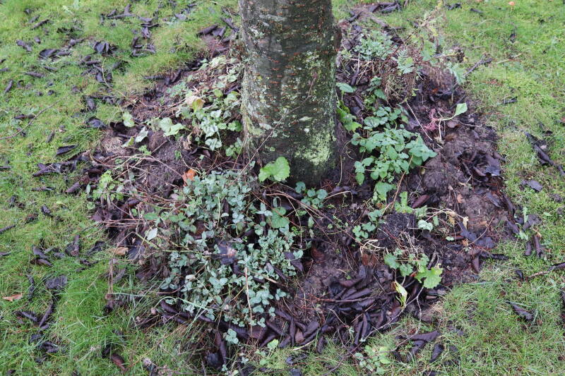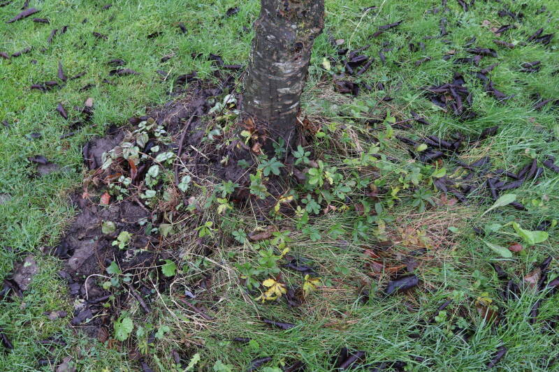 Aanwezig voor het verwijderen van het gras in de boomspiegel.