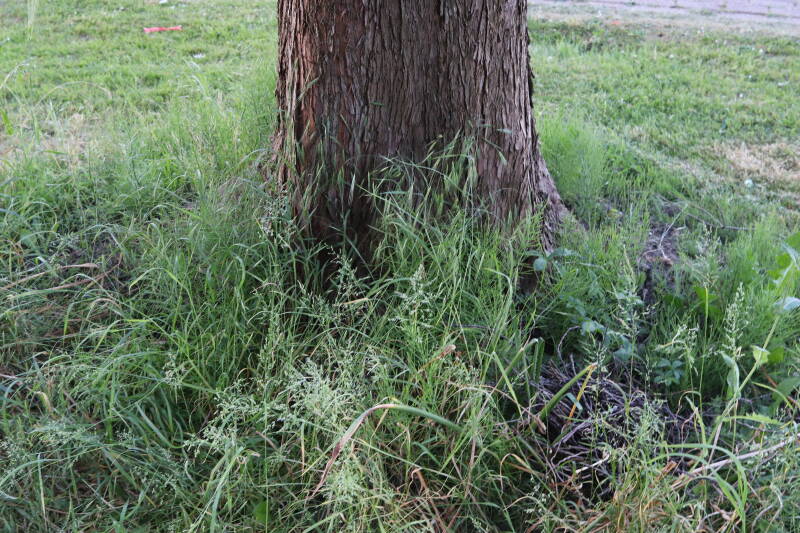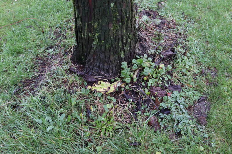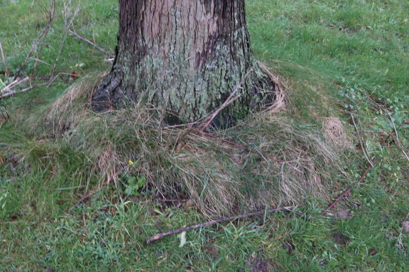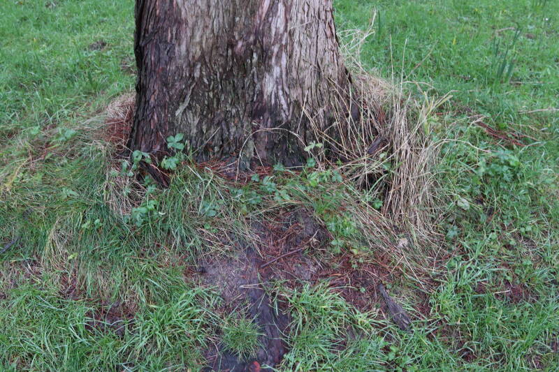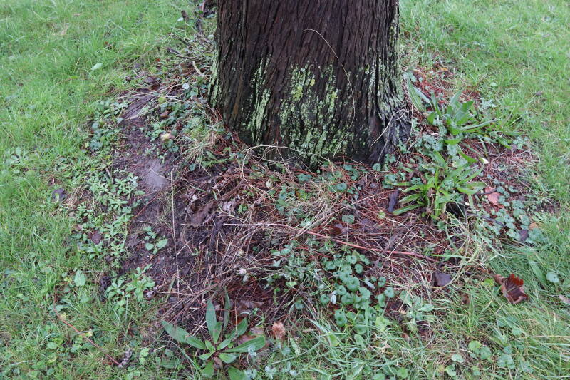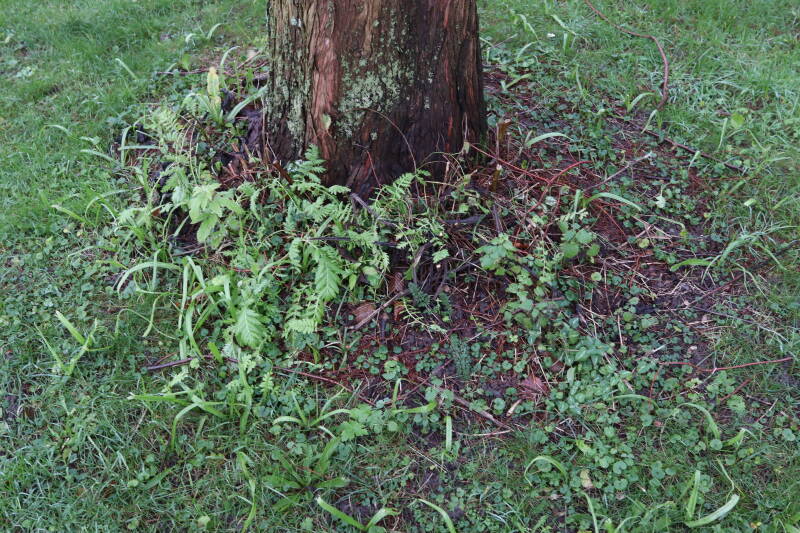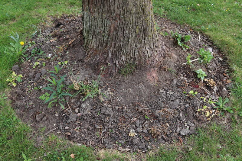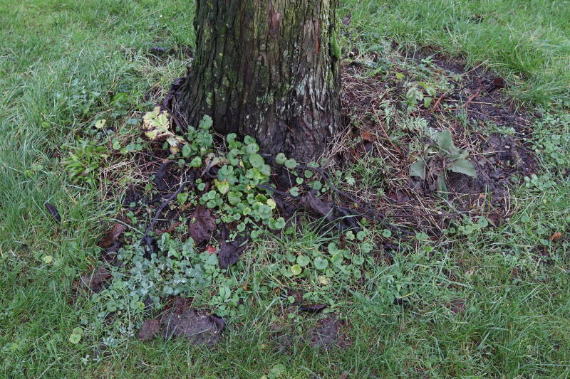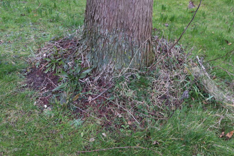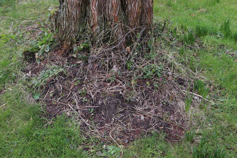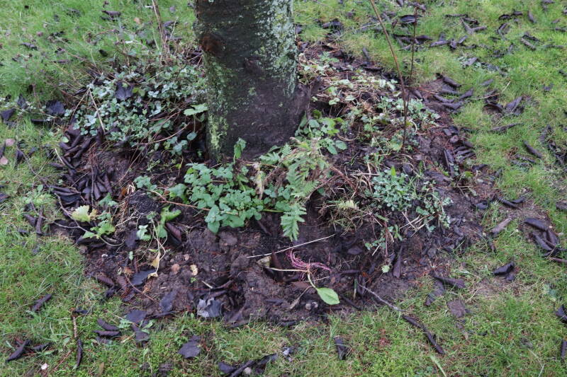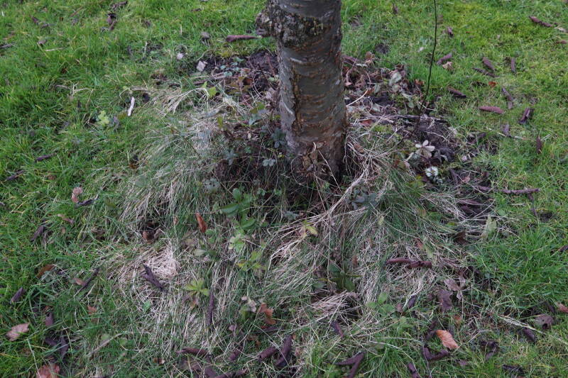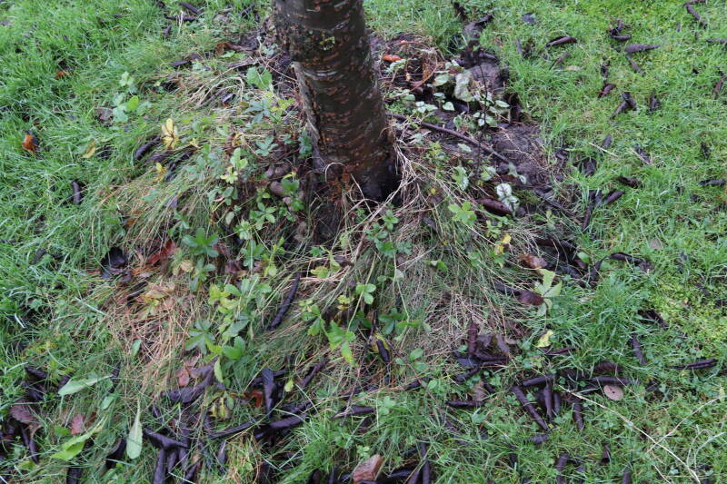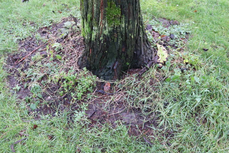 Aanwezig voor het verwijderen van het gras in de boomspiegel.
