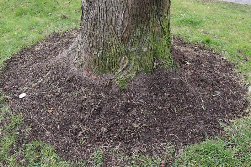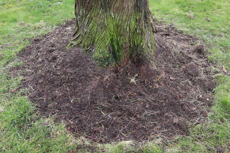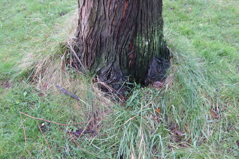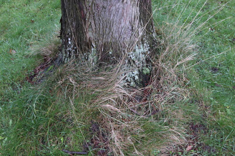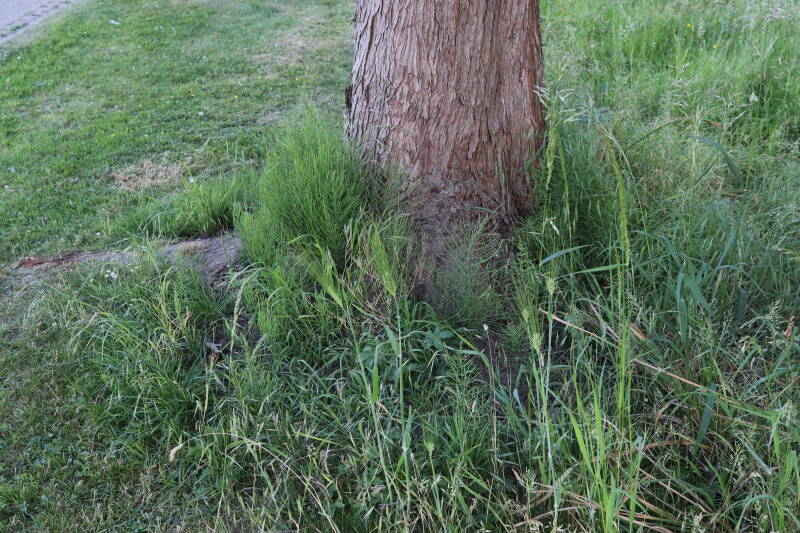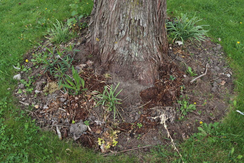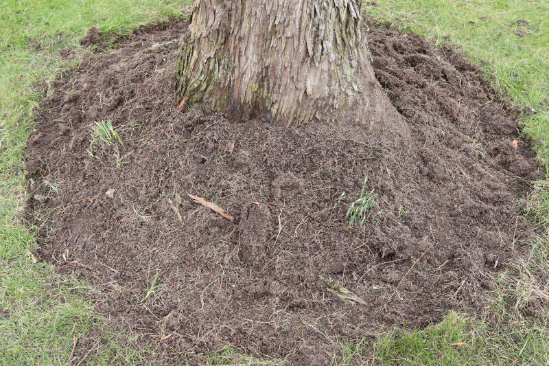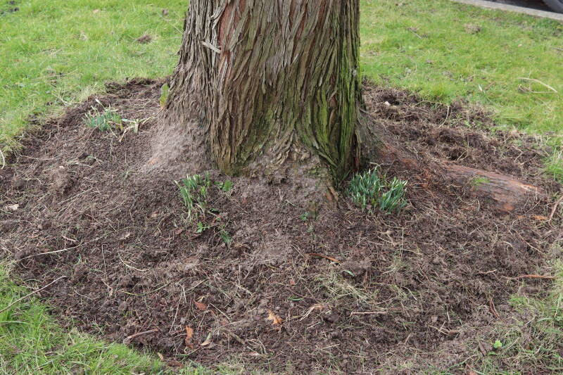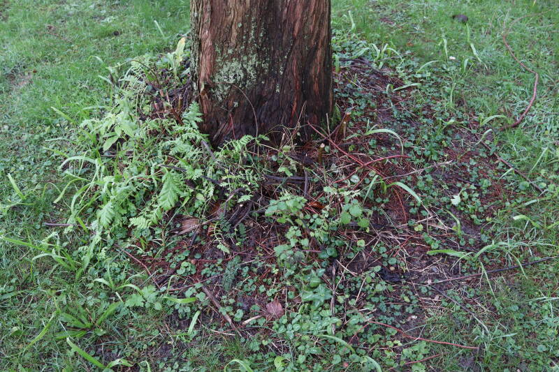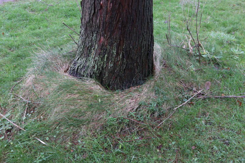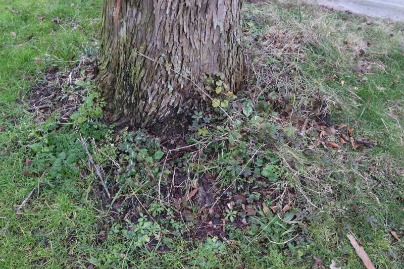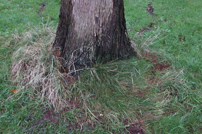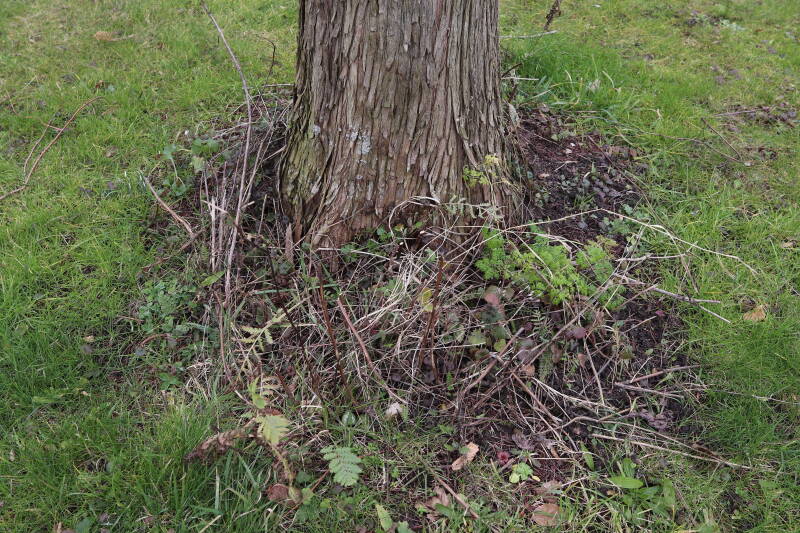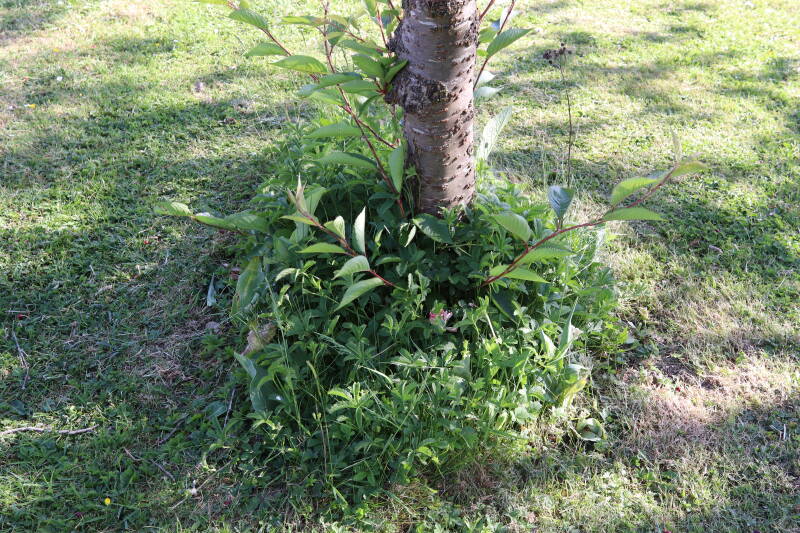Aanwezig voor het verwijderen van het gras in de boomspiegel.
