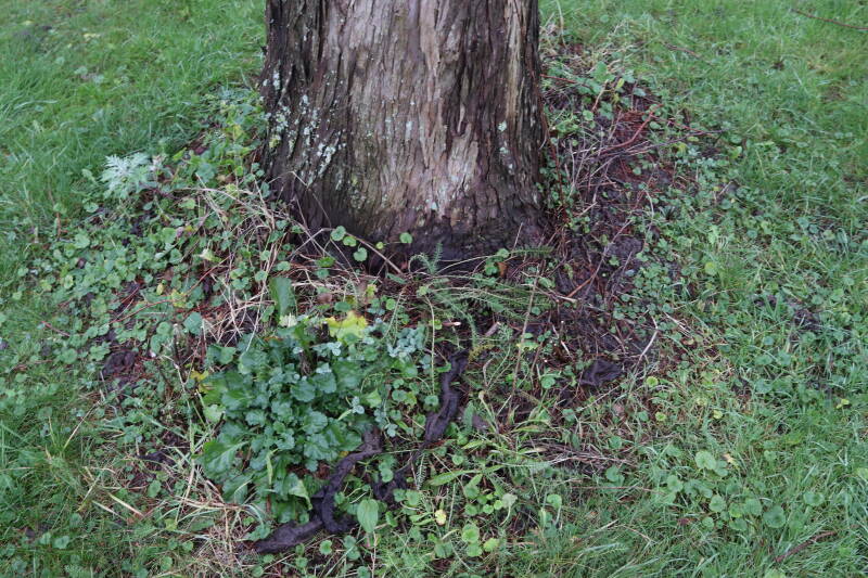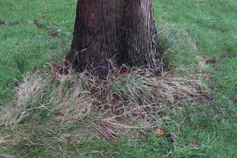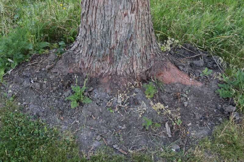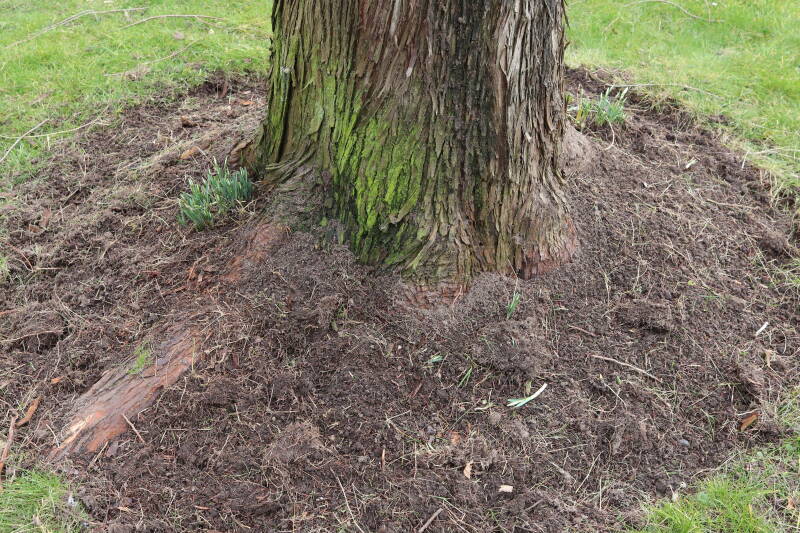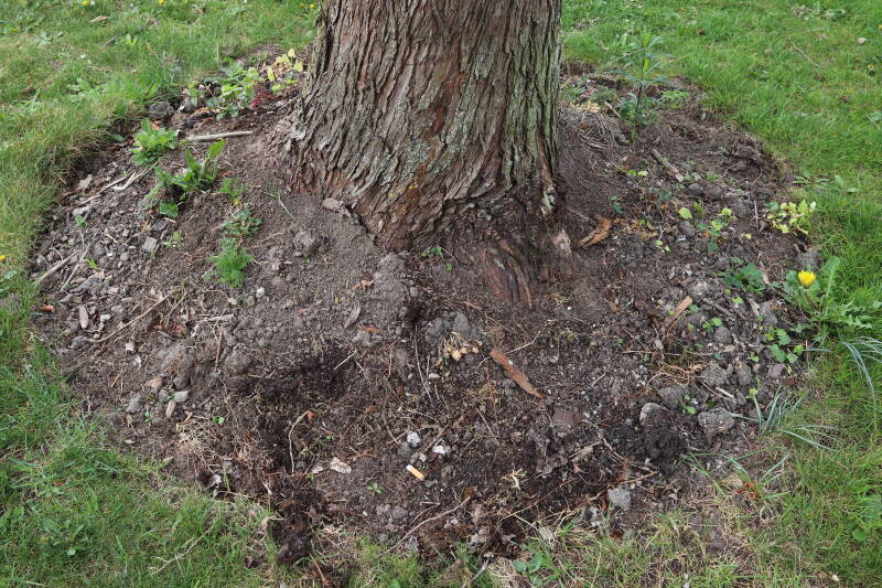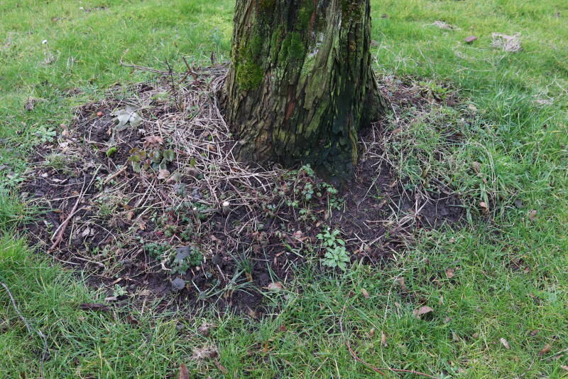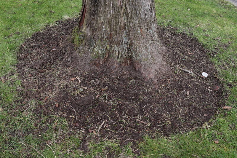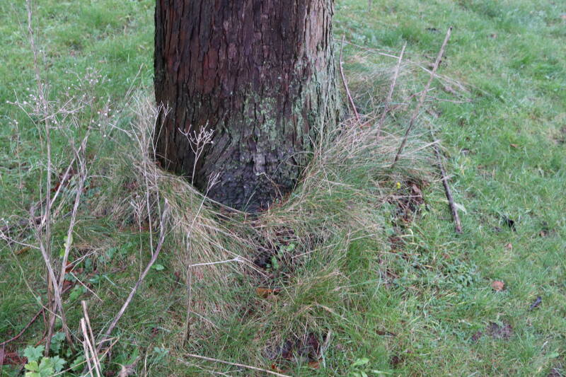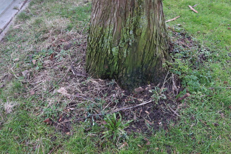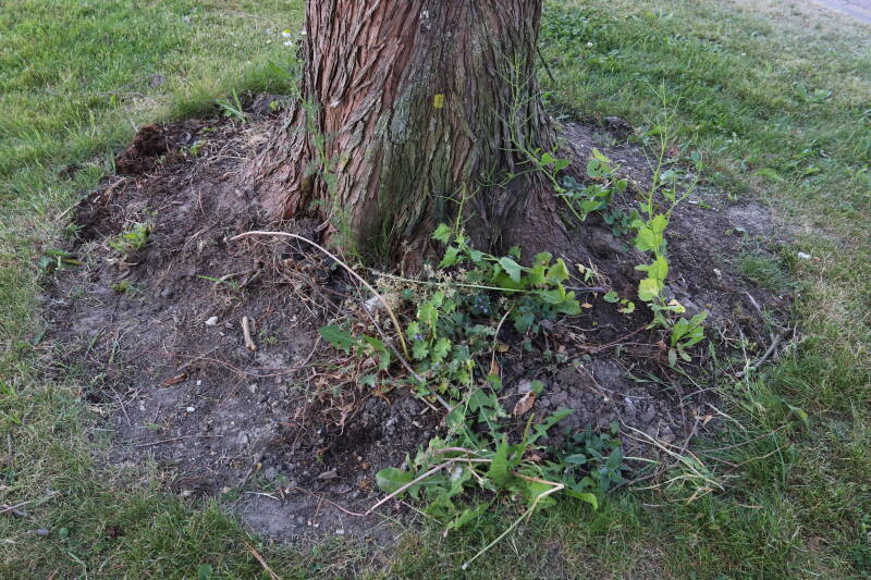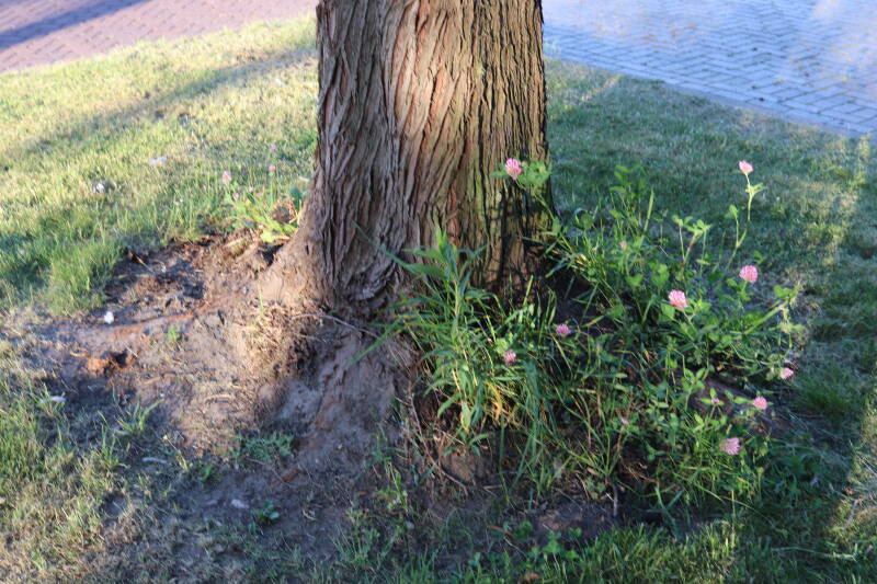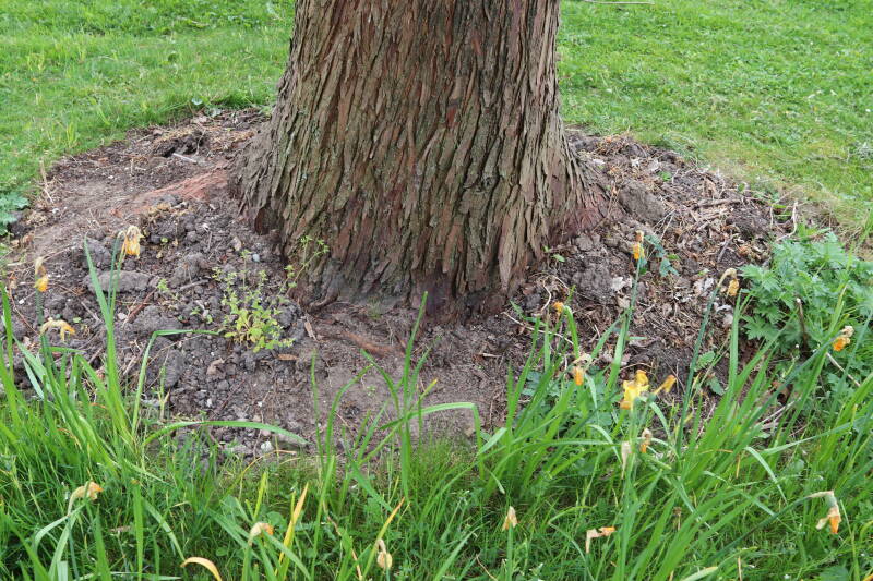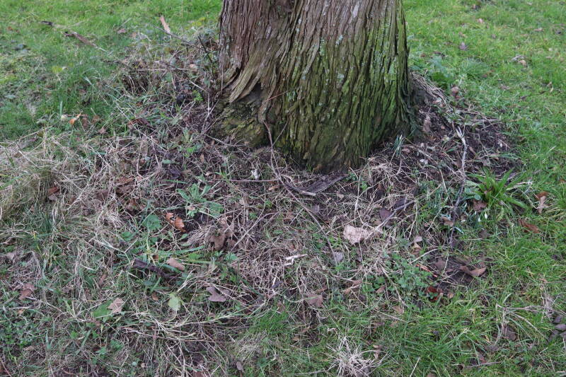 Aanwezig voor het verwijderen van het gras in de boomspiegel.