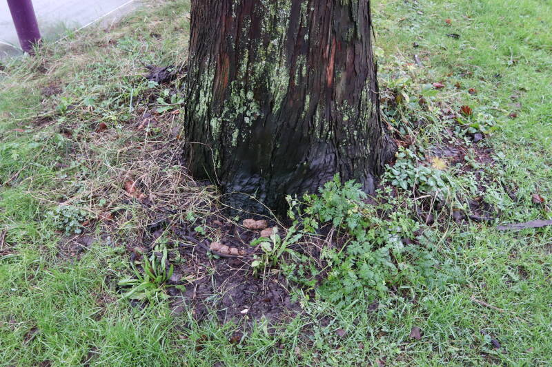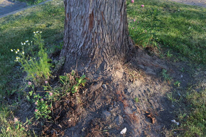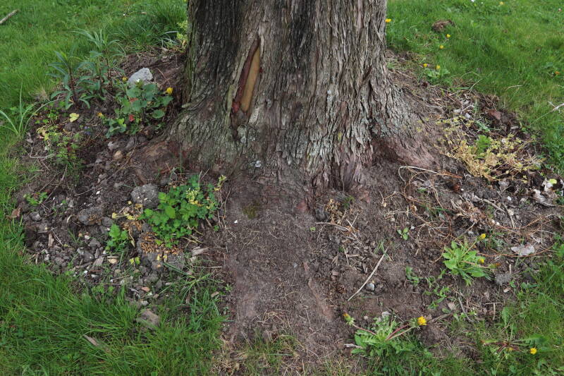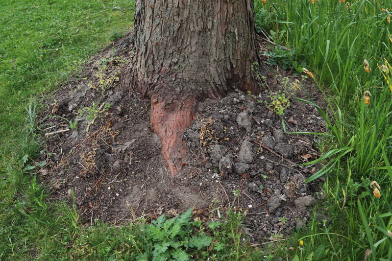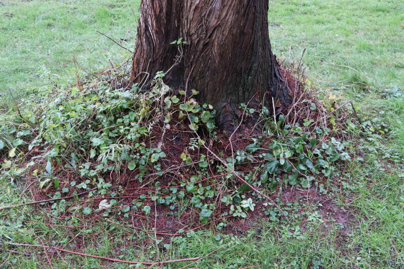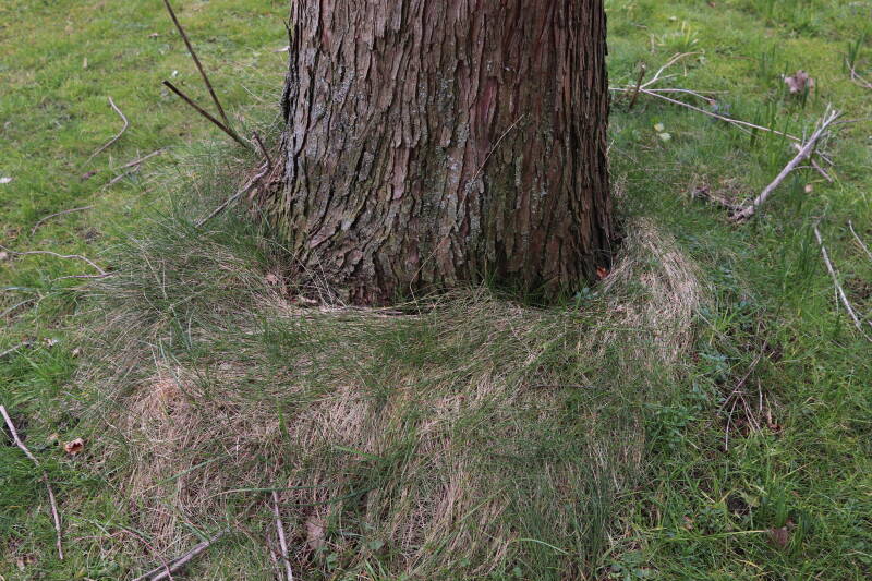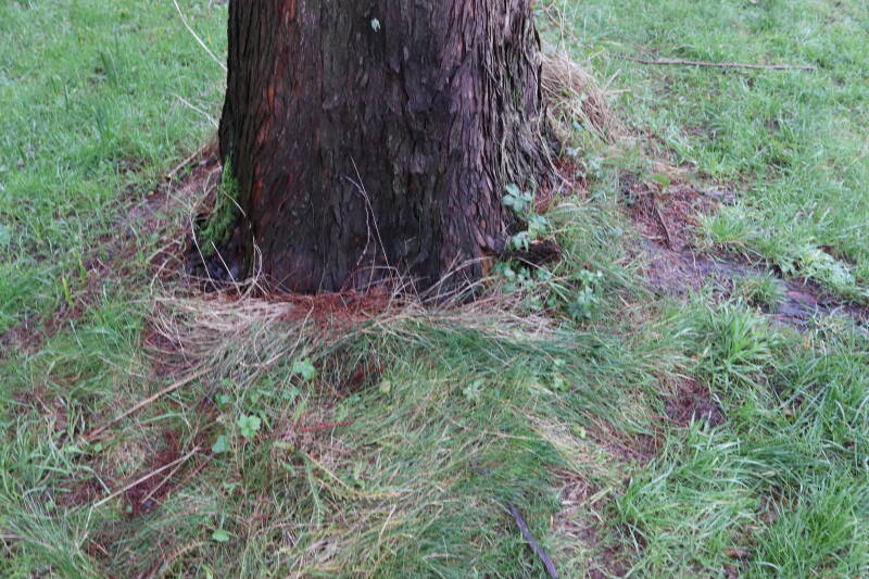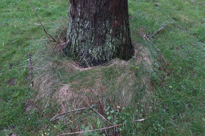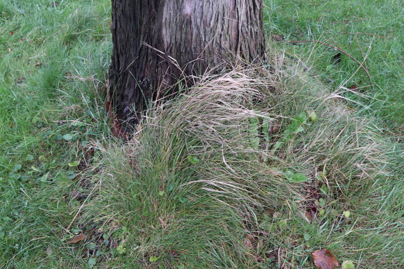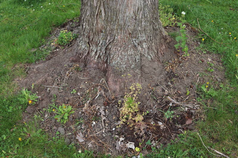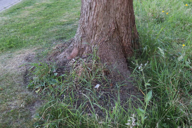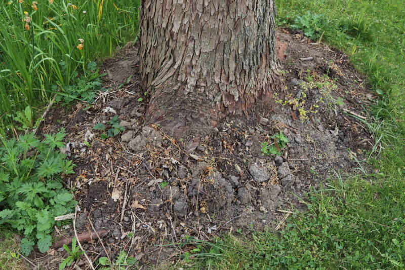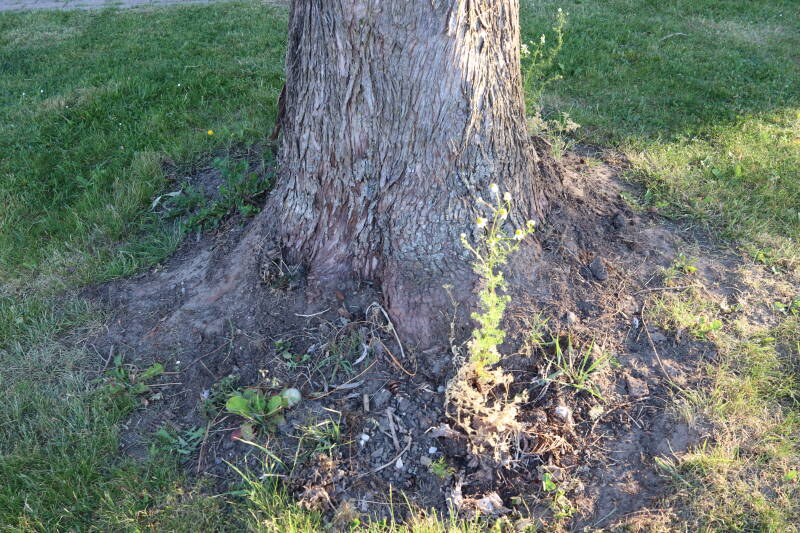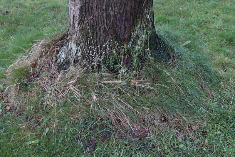 Aanwezig voor het verwijderen van het gras in de boomspiegel.