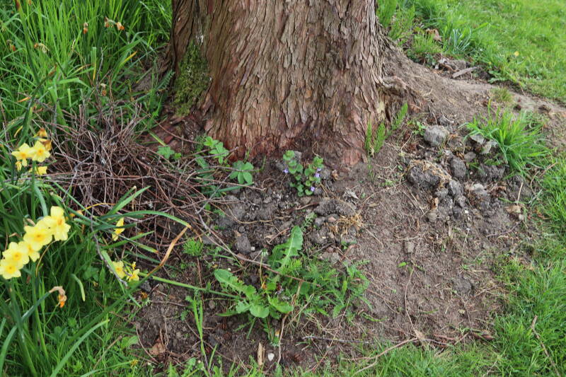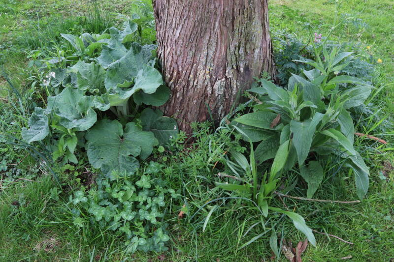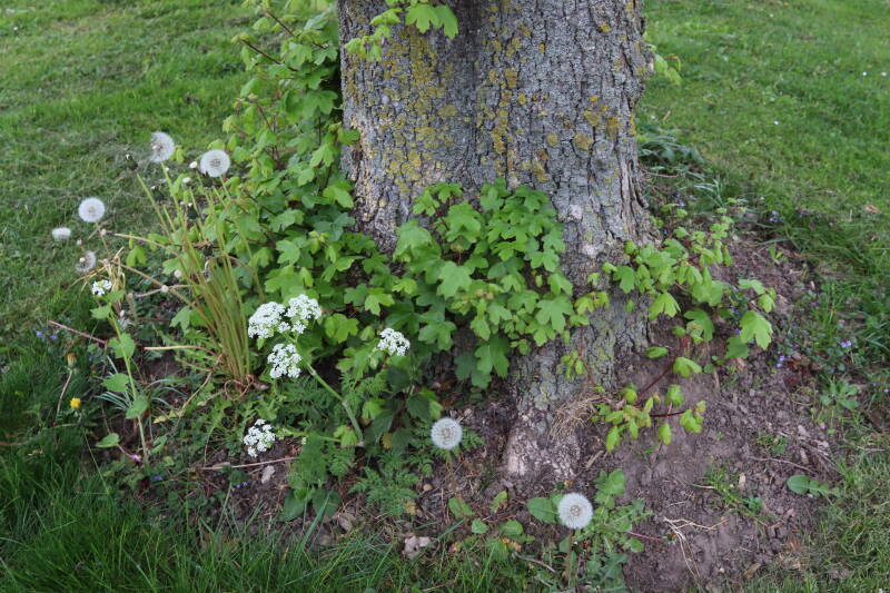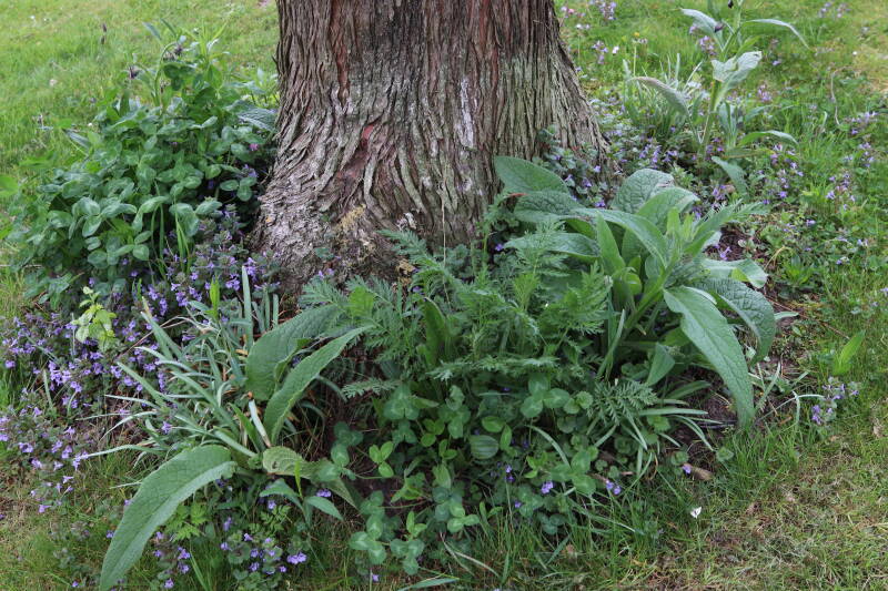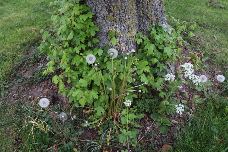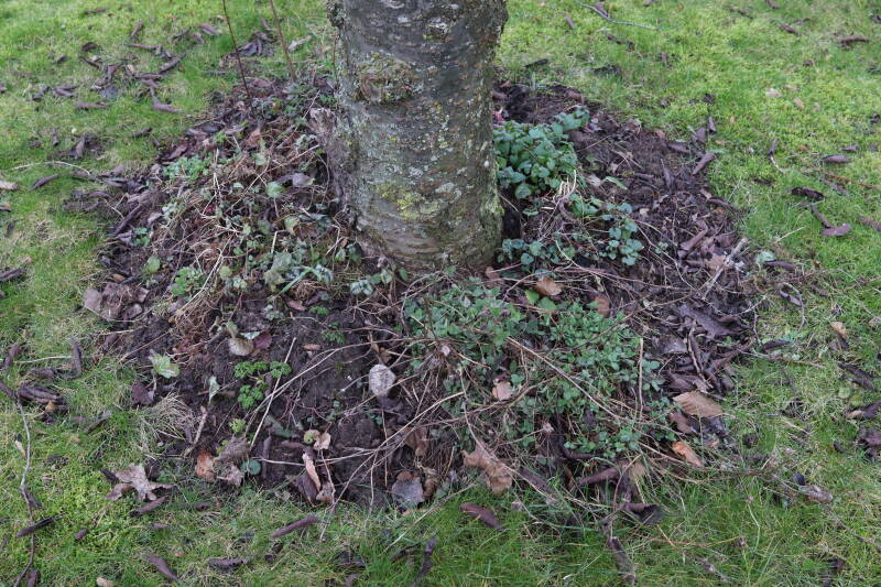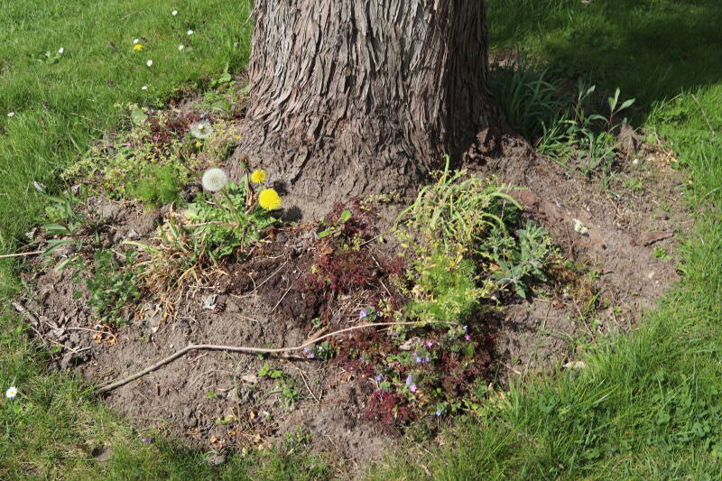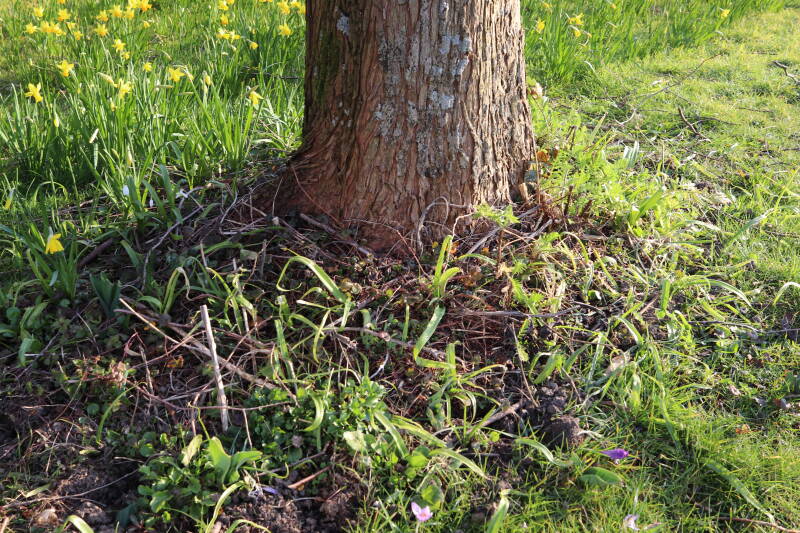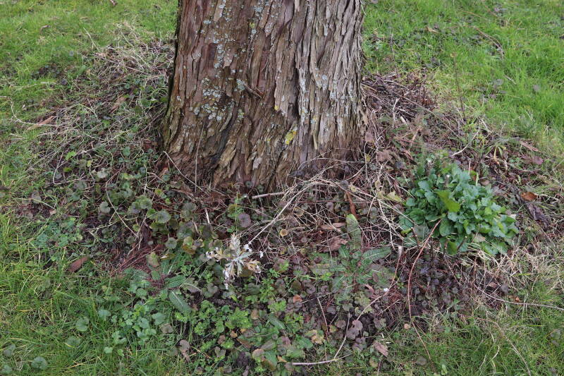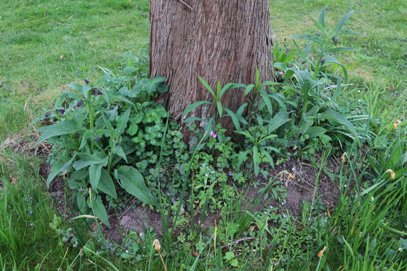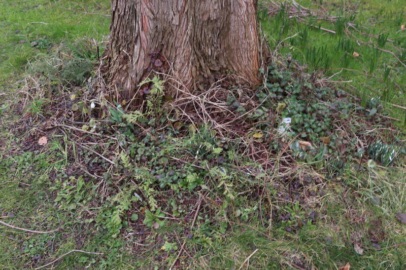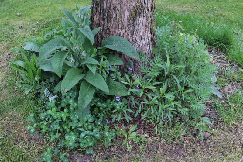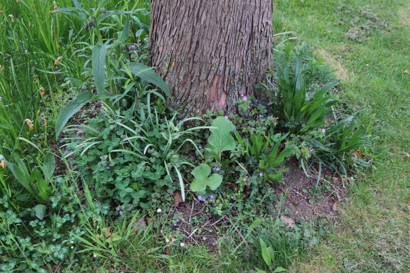 Het eerste onderhoud aan de boomspiegels is gedurende de eerste week van maart gepleegd door de grassen te verwijderen en een enkele brandnetel. In deze maand zijn ook de laatste boomspiegels van gras ontdaan en deels ingeplant. Het moet de komende weken tot maanden verder vorm krijgen en dan is het afwachten wat ervan de moeilijke omstandigheden rondom de boomstam overleeft. Ik ben selectiever geworden in de soorten die ik wil gaan toepassen en de natuur komt dit jaar wat later op gang vanwege de lage temperaturen, waardoor bepaalde soorten zich nog niet hebben laten zien.