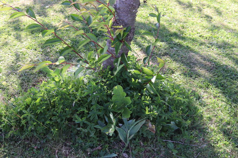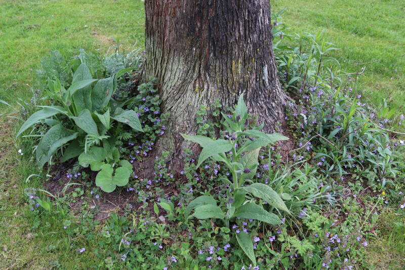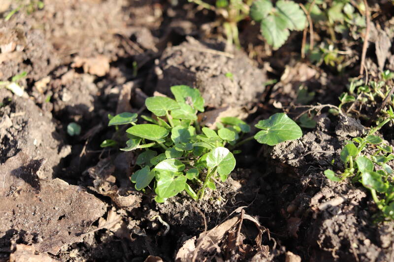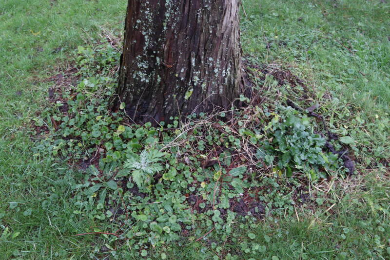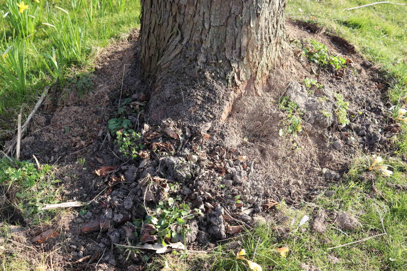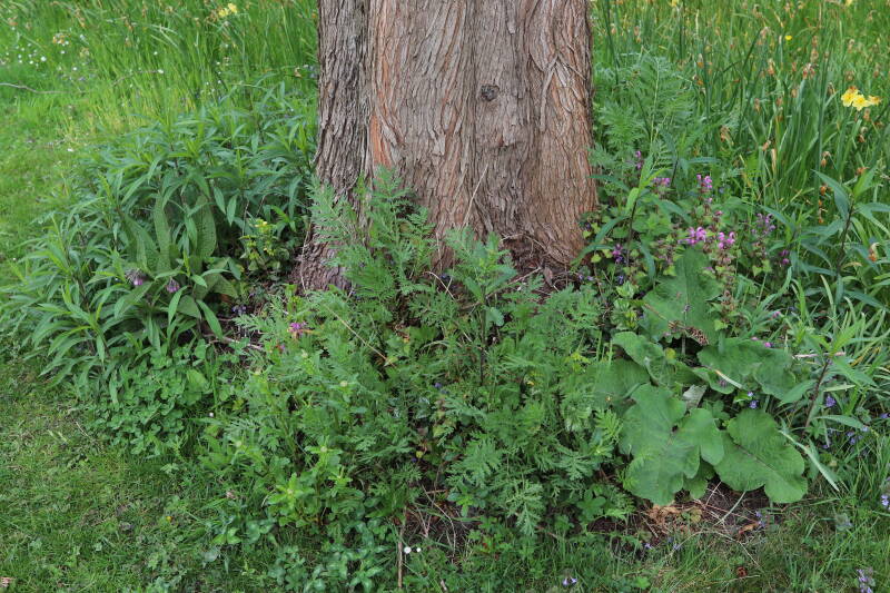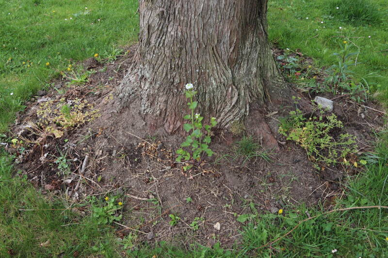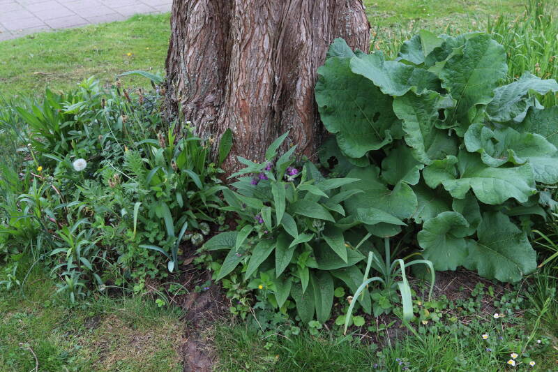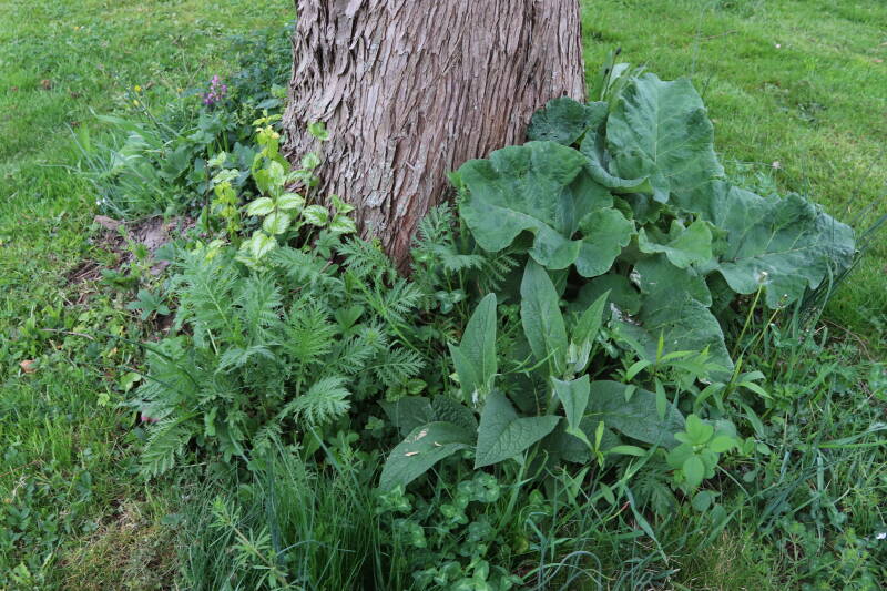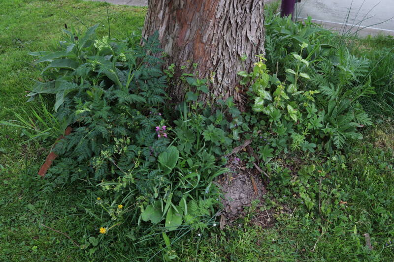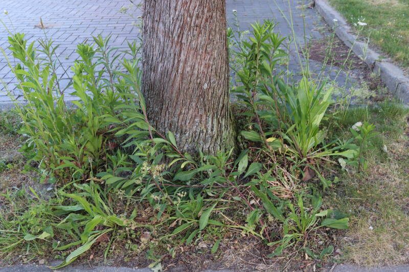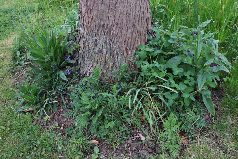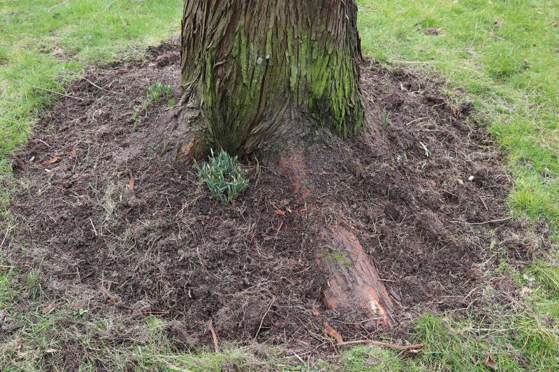Het eerste onderhoud aan de boomspiegels is gedurende de eerste week van maart gepleegd door de grassen te verwijderen en een enkele brandnetel. In deze maand zijn ook de laatste boomspiegels van gras ontdaan en deels ingeplant. Het moet de komende weken tot maanden verder vorm krijgen en dan is het afwachten wat ervan de moeilijke omstandigheden rondom de boomstam overleeft. Ik ben selectiever geworden in de soorten die ik wil gaan toepassen en de natuur komt dit jaar wat later op gang vanwege de lage temperaturen, waardoor bepaalde soorten zich nog niet hebben laten zien.