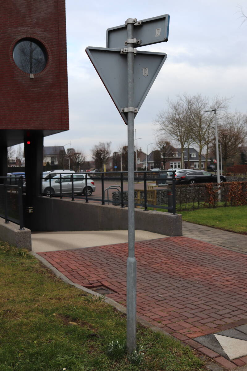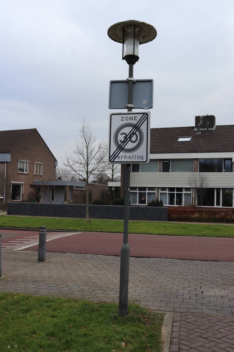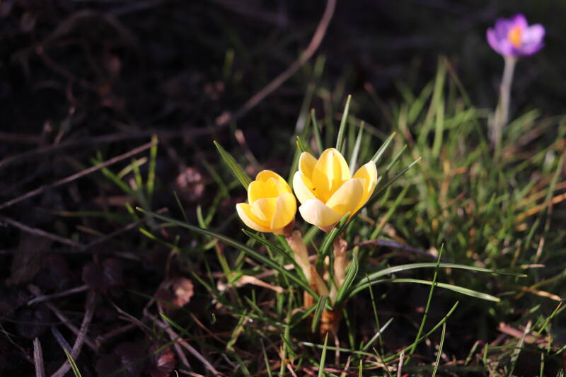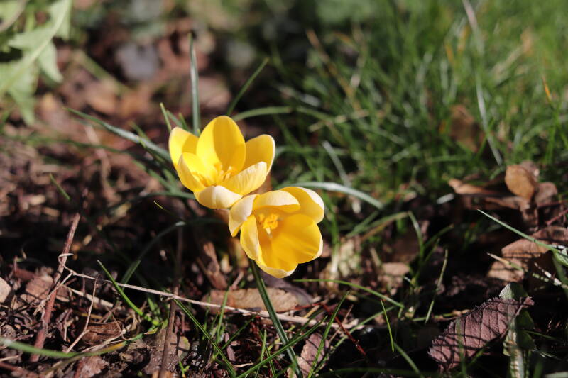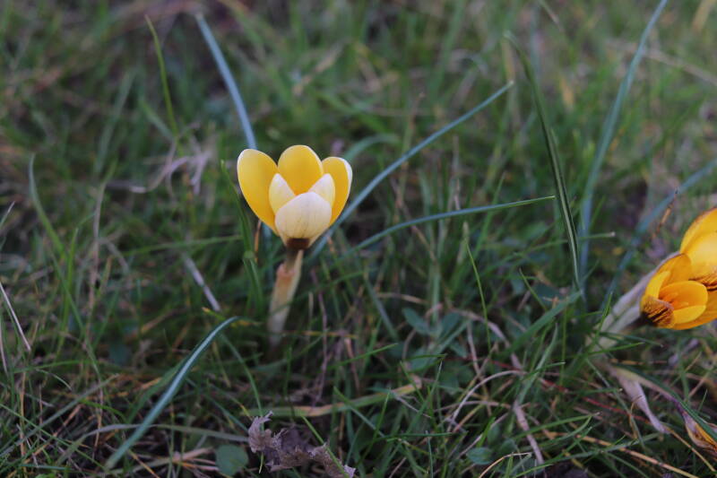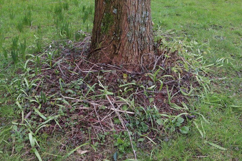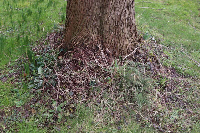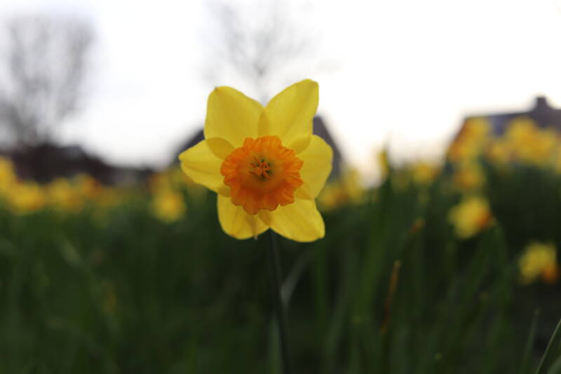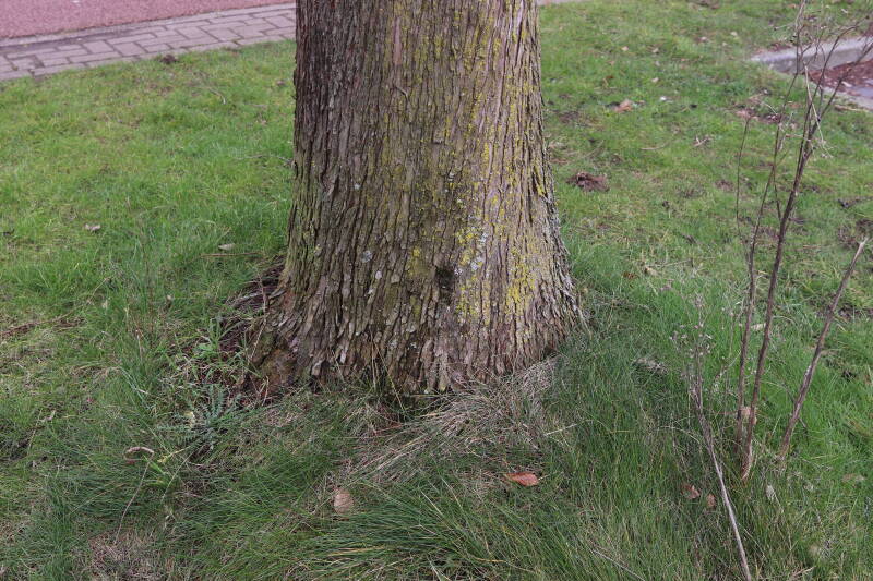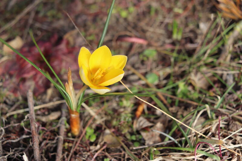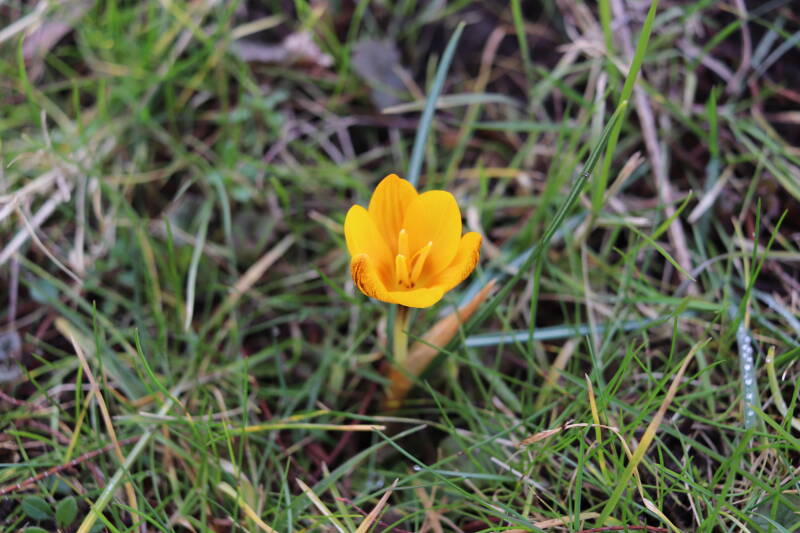 Rondom diverse bomen, bij lantaarnpalen, verkeersborden en een schrikhek is een enkele soort bollen aangeplant. Veel vroegbloeiende bollen rondom de obstakels moeten al afgestorven zijn tegen de tijd dat er periodiek zal worden gebosmaaid, om deze bollen de kans te geven zich hier te handhaven. Het beperkt de soorten die ik hier kan toepassen, maar in de toekomst wel wens uit te breiden. Ik hoop dat de bollen rondom de boomspiegels langer ongemoeid worden gelaten en de mogelijkheid krijgen voldoende reserves op te bouwen om ook de komende jaren te kunnen schitteren.