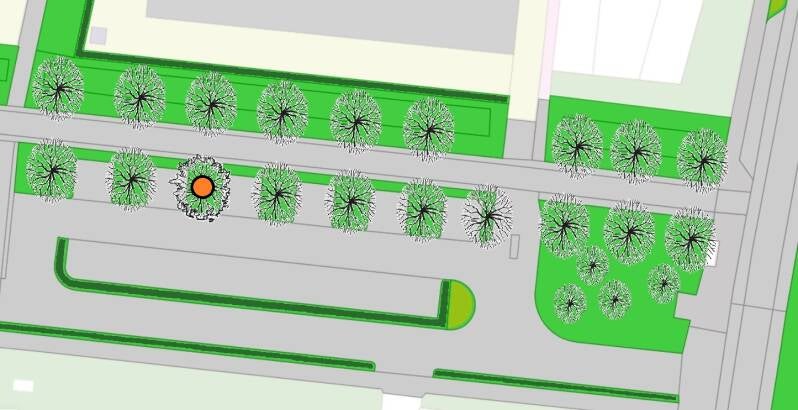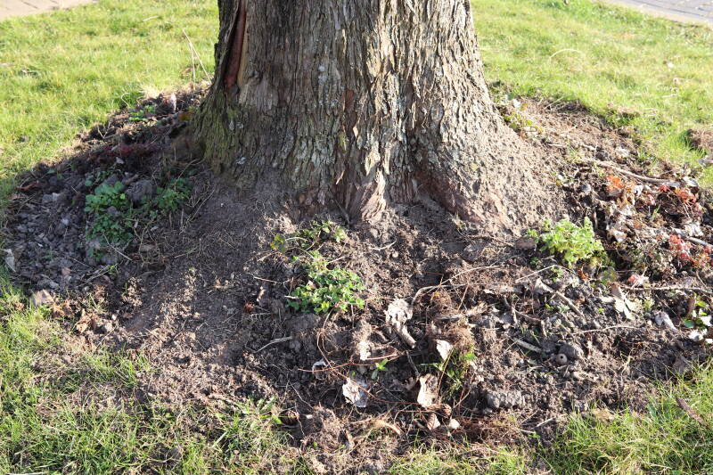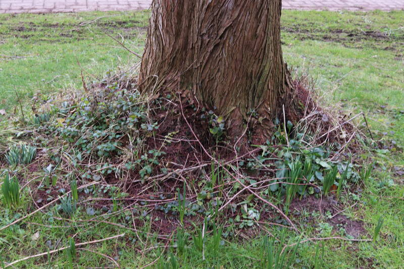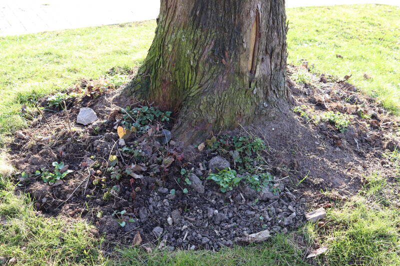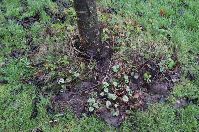 In 2022 is hier begonnen met het verwijderen van het gras en inplanten van de boomspiegel.