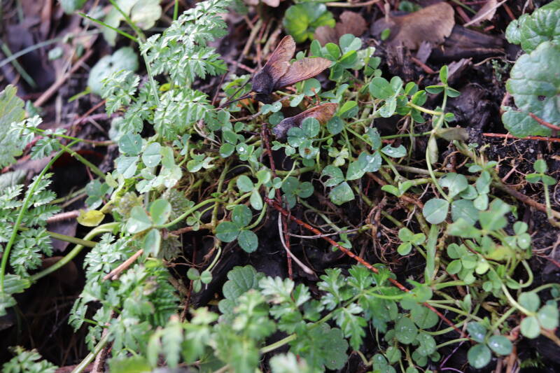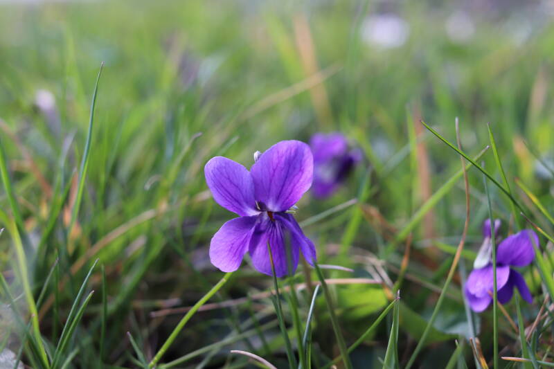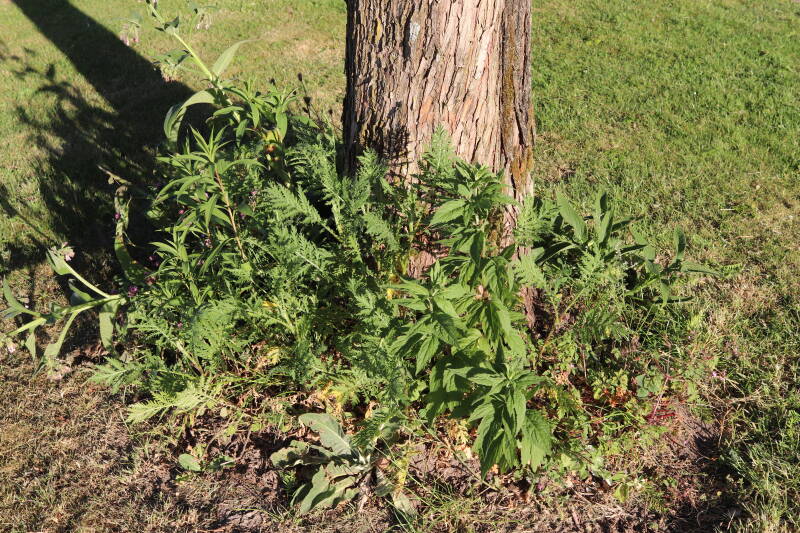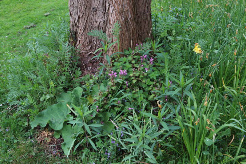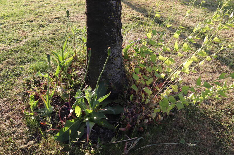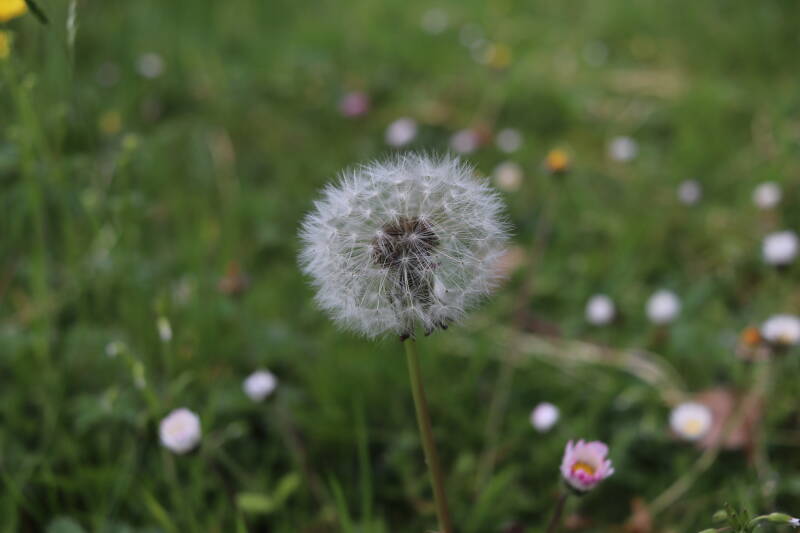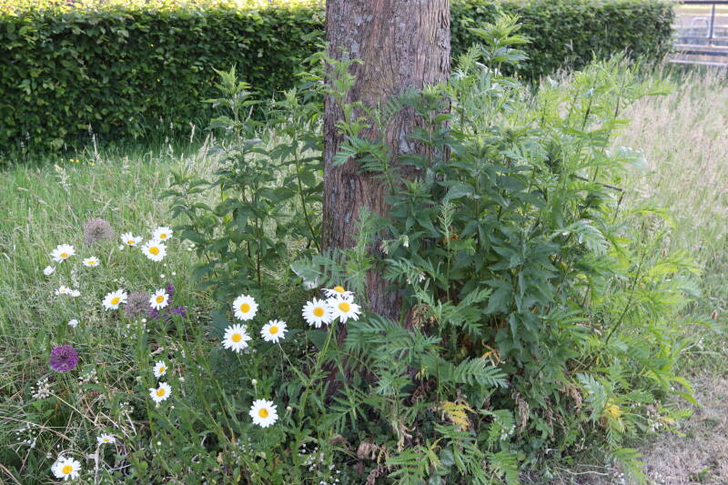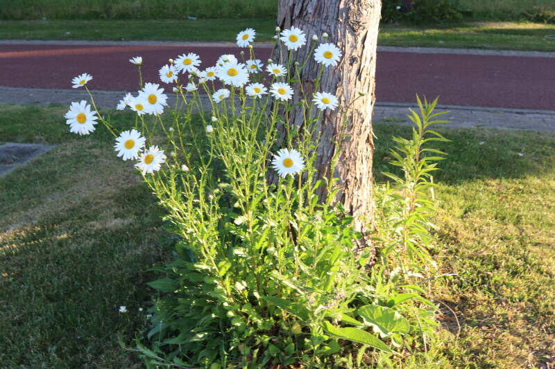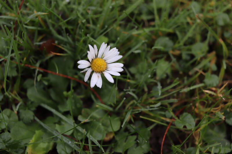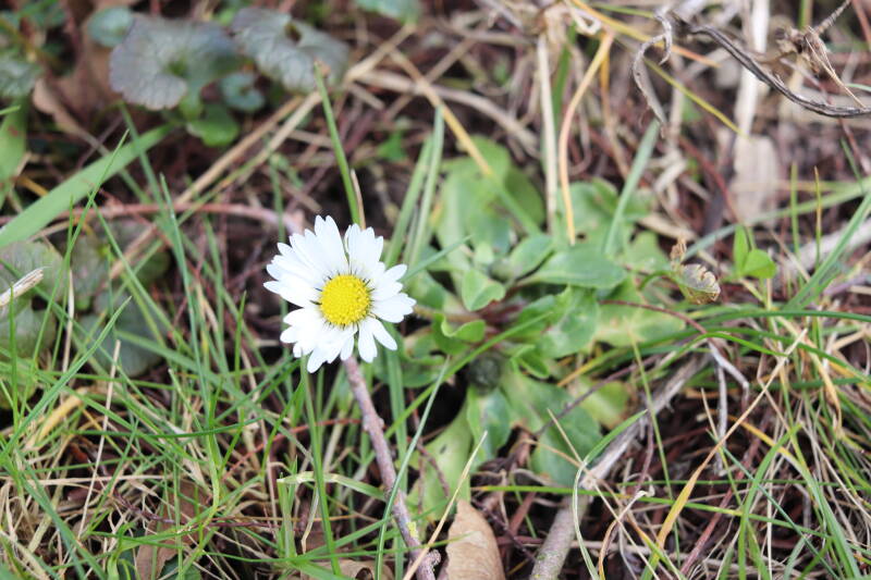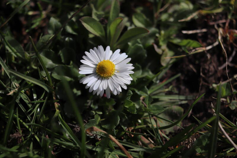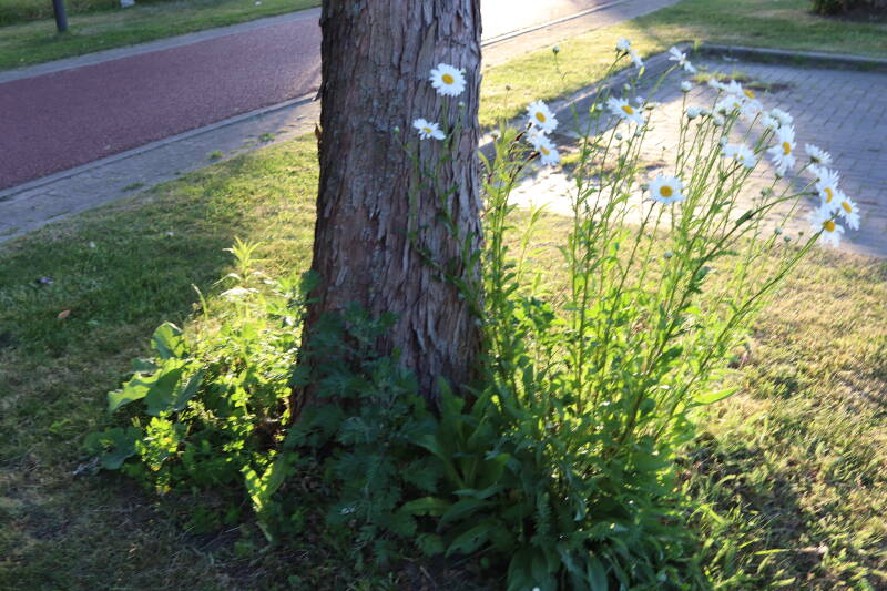 In deze maand ben ik onze Nationale bloem in het gazon tegengekomen, het madeliefje. Het was geen uitzondering, maar tientallen madeliefjes lieten de witte bloemhoofdjes boven het gras uitsteken. In de boomspiegels zijn kruidachtige planten deels of al helemaal afgestorven. Veel vaste planten bereiden zich ondergronds voor op hun terugkeer, wachtend op het juiste moment. Een enkele vasthoudende paarse dovennetel blijft hardnekkig bloeien als enige van zijn soort.
