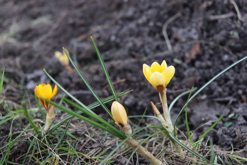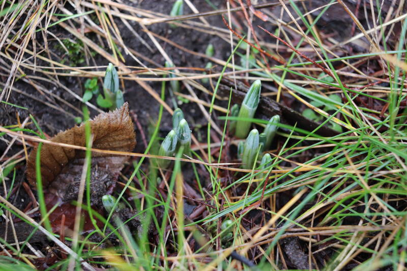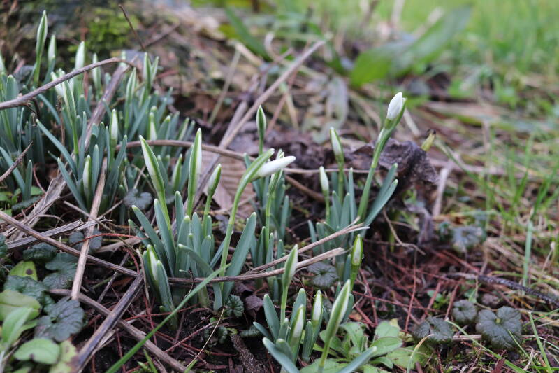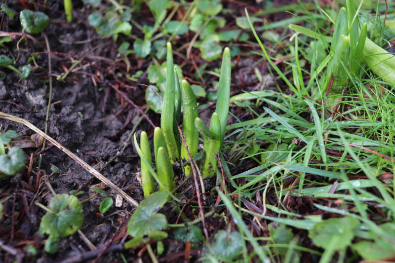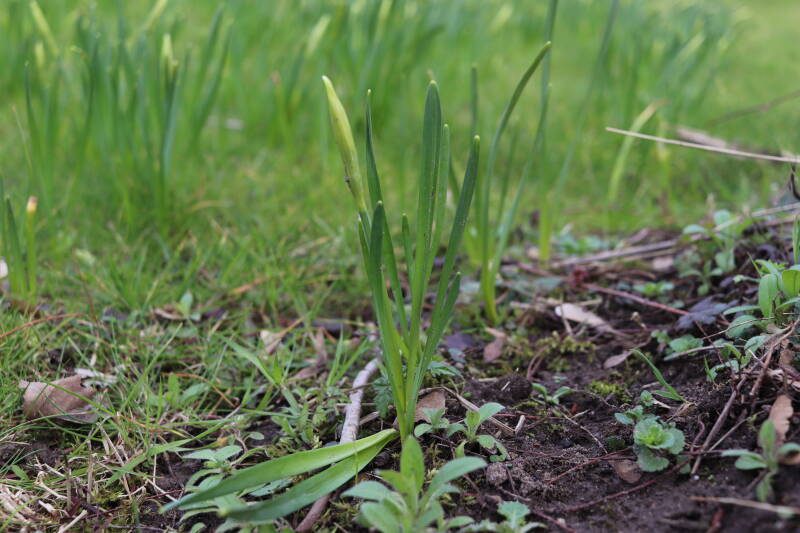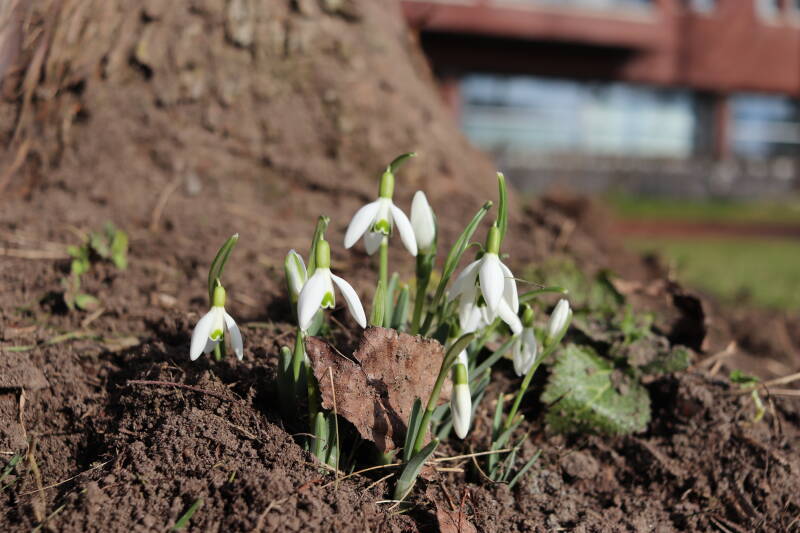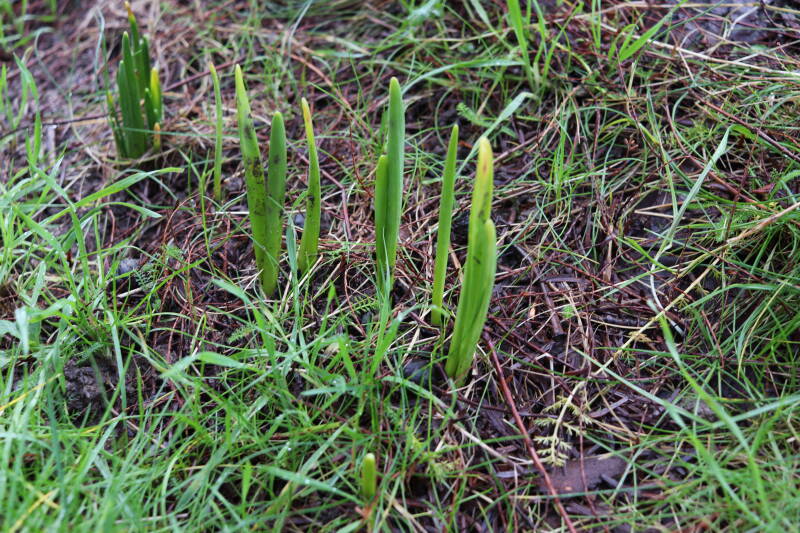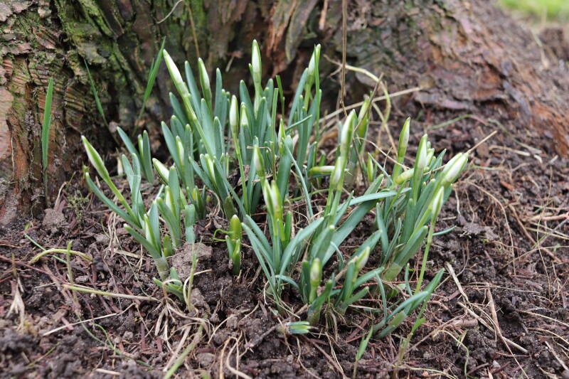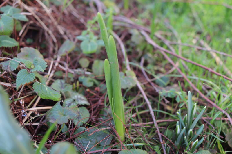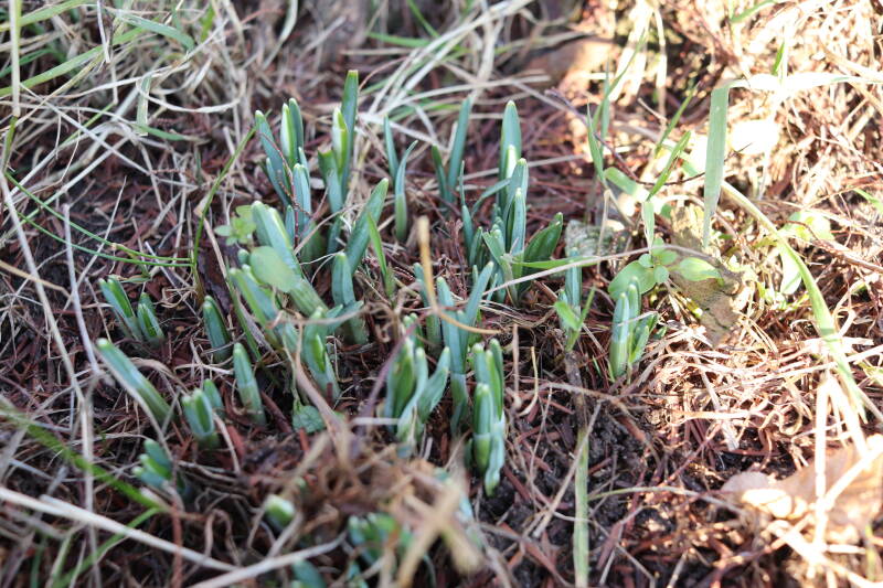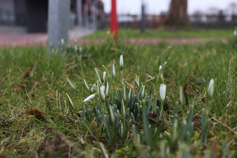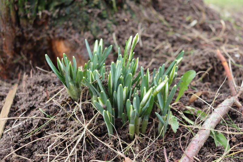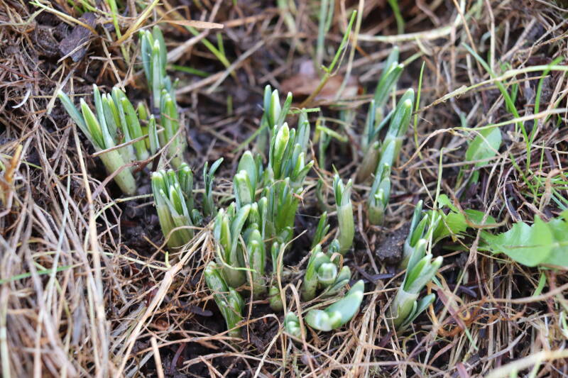 De afgelopen maanden hebben veel bollen ondergronds doorgebracht, terend op de opgebouwde reserves. In de stroken waar jaren geleden de Narcissus 'Martinette' machinaal zijn geplant laten de Narcissen zich begin januari al weer zien met groene punten tegen een gedeeltelijk witte achtergrond van smeltende sneeuw. De komende periode zal de ontwikkeling van de bollen met behulp van foto's worden vastgelegd. Deze tijd wordt door de bollen benut om de reserves weer op te bouwen, waarbij het van belang is dat het groene loof ongemoeid wordt gelaten tot het is bovengronds is afgestorven.