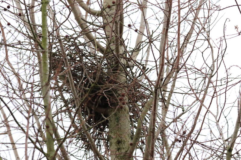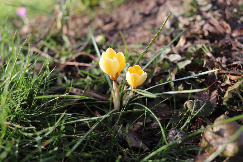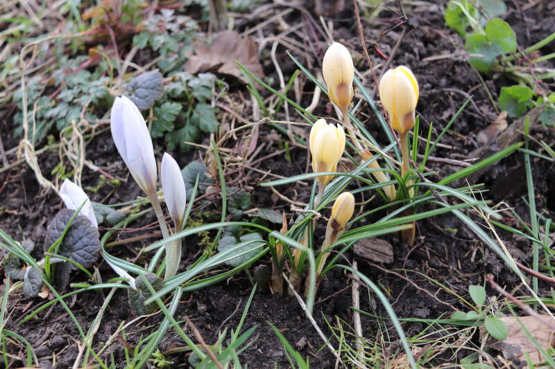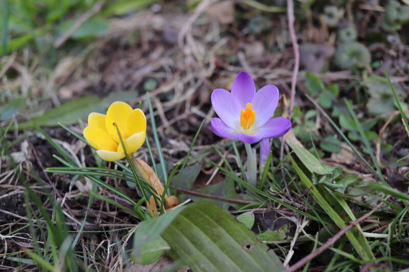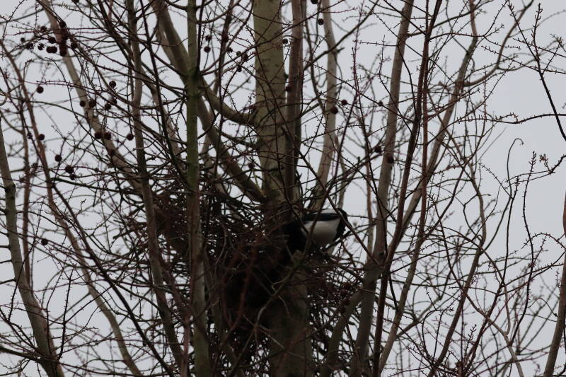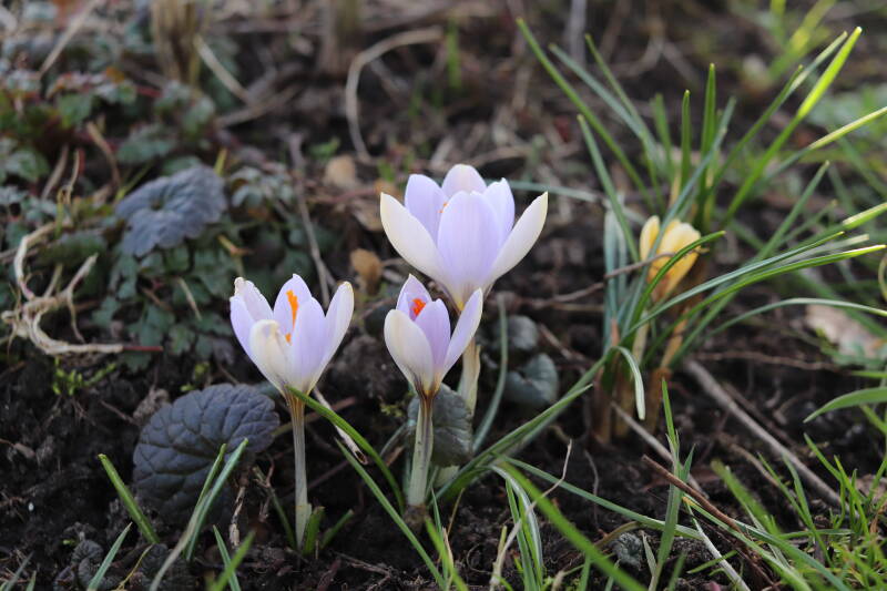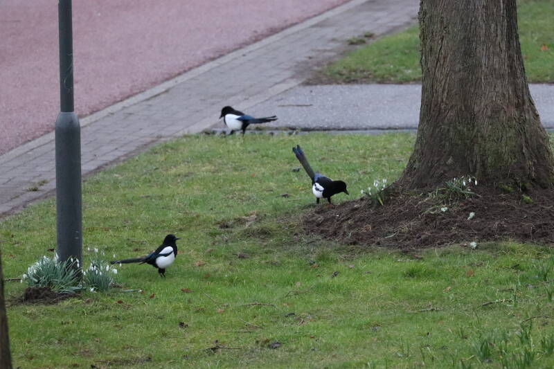 De maand met wisselend temperaturen. Een koppel eksters (Pica pica) was bezig het bestaande nest, een groot bouwsel van takken, te verbeteren. Veel van de bloeiende planten bestaan uit bolgewassen met een diversiteit aan kleuren.