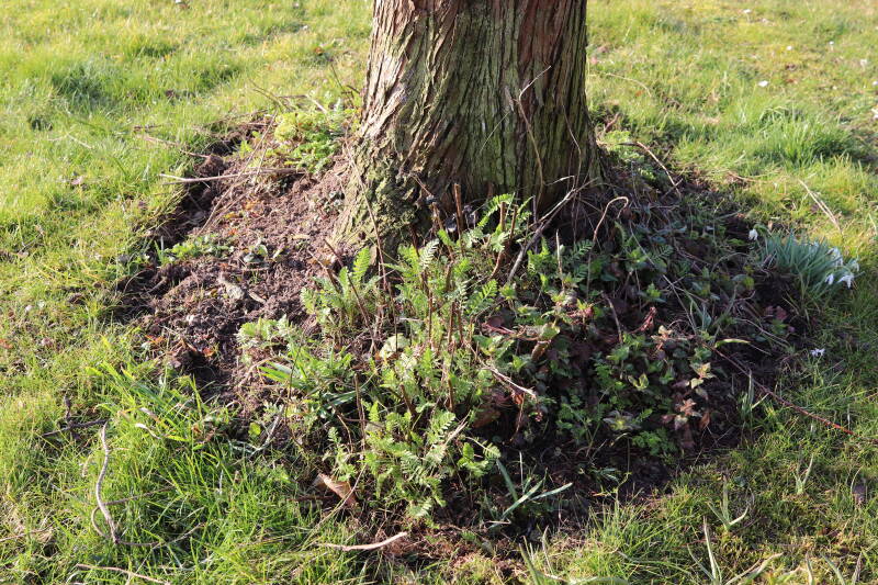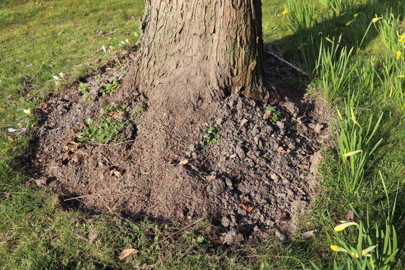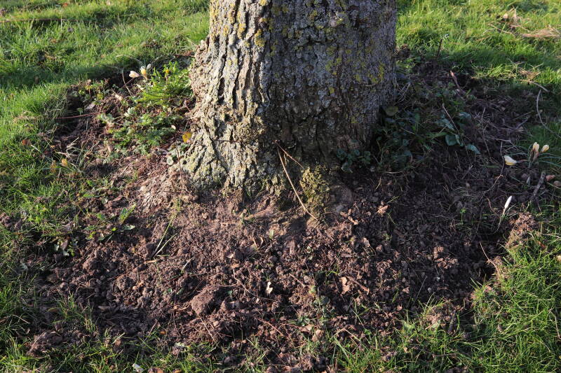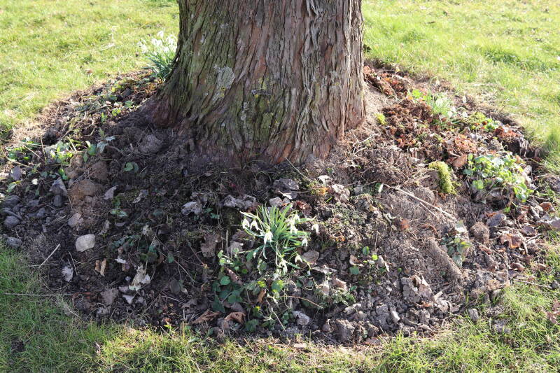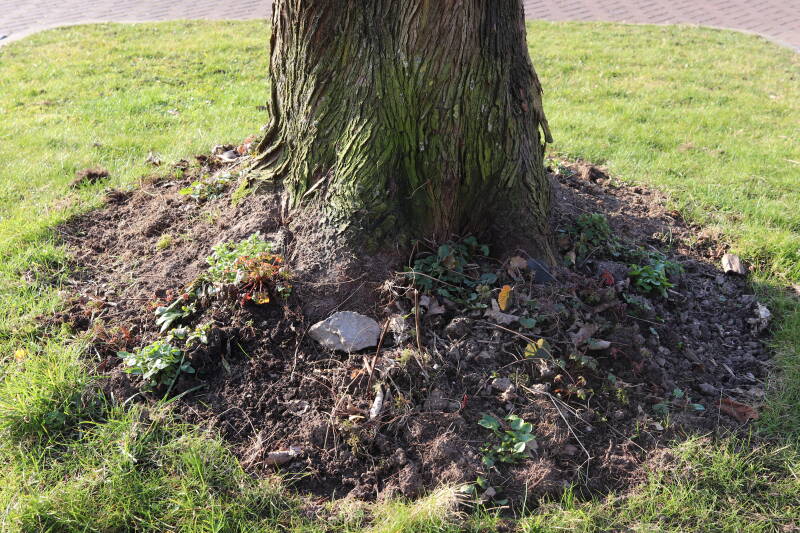 In 2023 is hier begonnen met het verwijderen van het gras en inplanten van de boomspiegel.