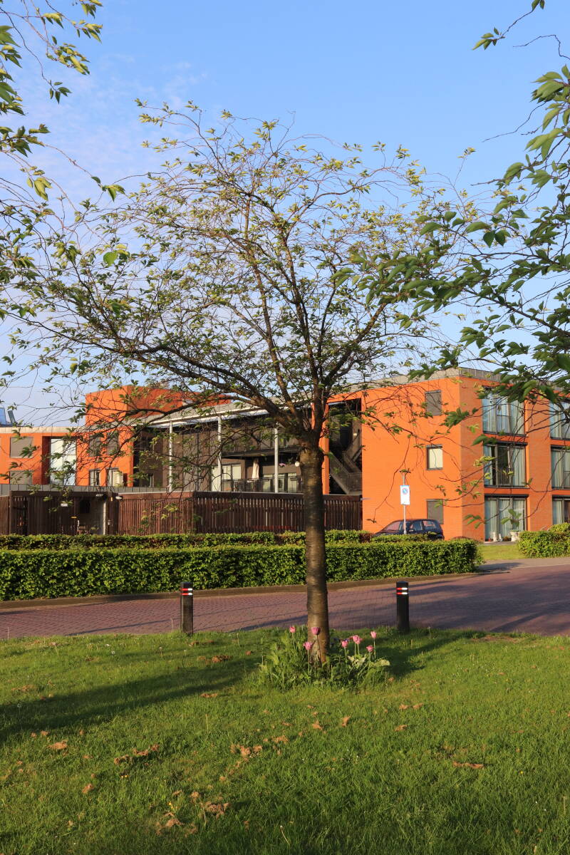 Deze Prunus avium (zoete kers) is in 2006 aangeplant. Het is een boomsoort die een hoogte kan bereiken tot 6 meter en een kroondiameter tot 5 meter. Het is een drachtboom voor bijen en vogels nuttigen de vruchten.