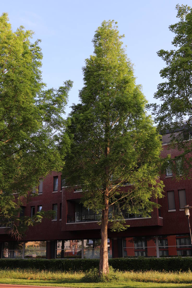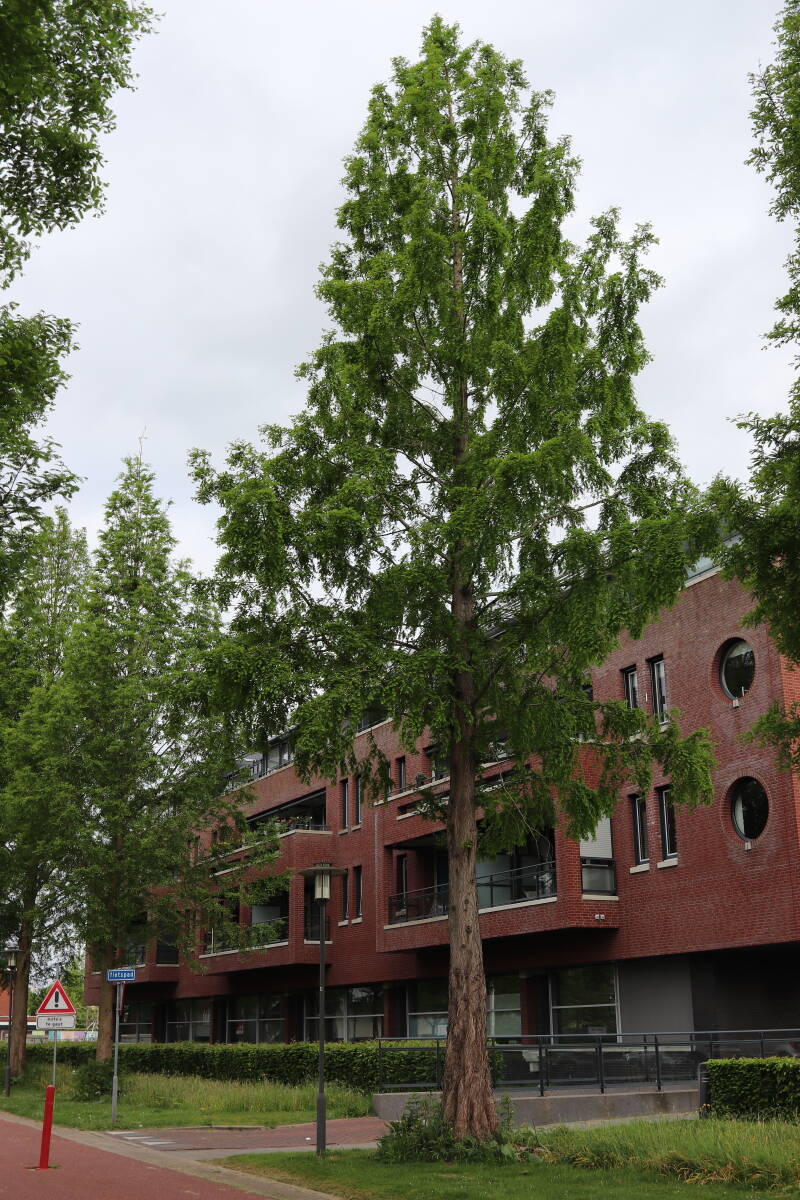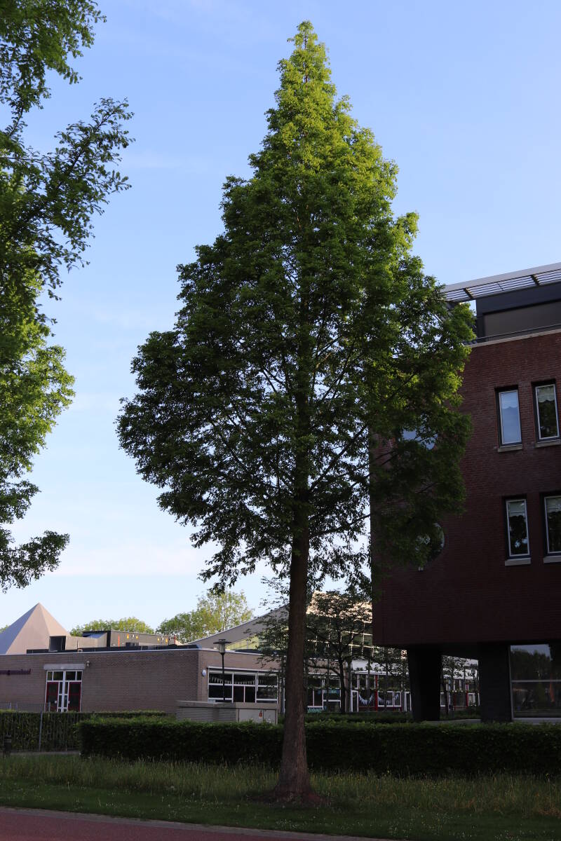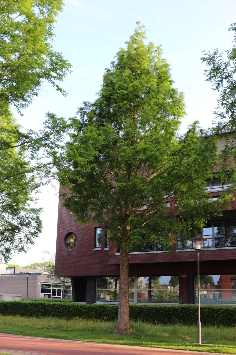 Deze Metasequoia glyptostroboides (Chinese moerascipres) is in 2006 aangeplant. Het is een bladverliezende coniferensoort die een hoogte kan bereiken van 20-30 meter en een kroondiameter tot 10 meter. De conifeer is een snelgroeiende soort, die windbestendig is en in natte grond geplant kan worden.