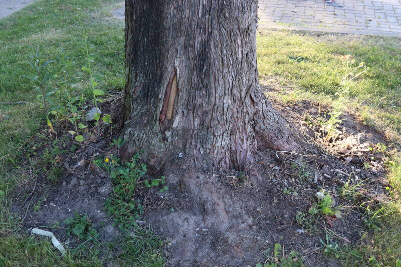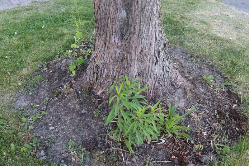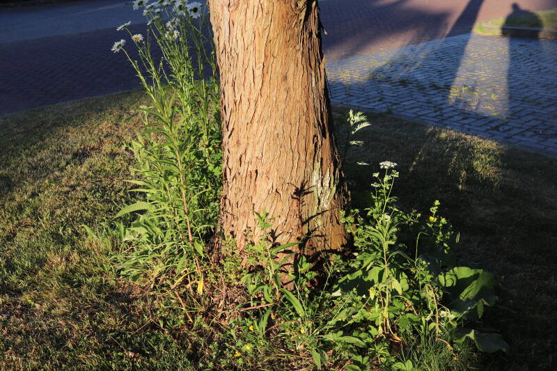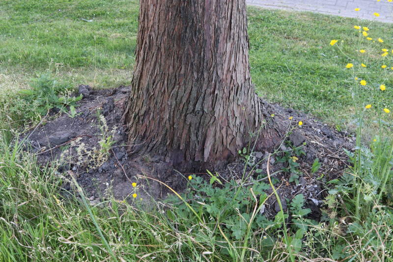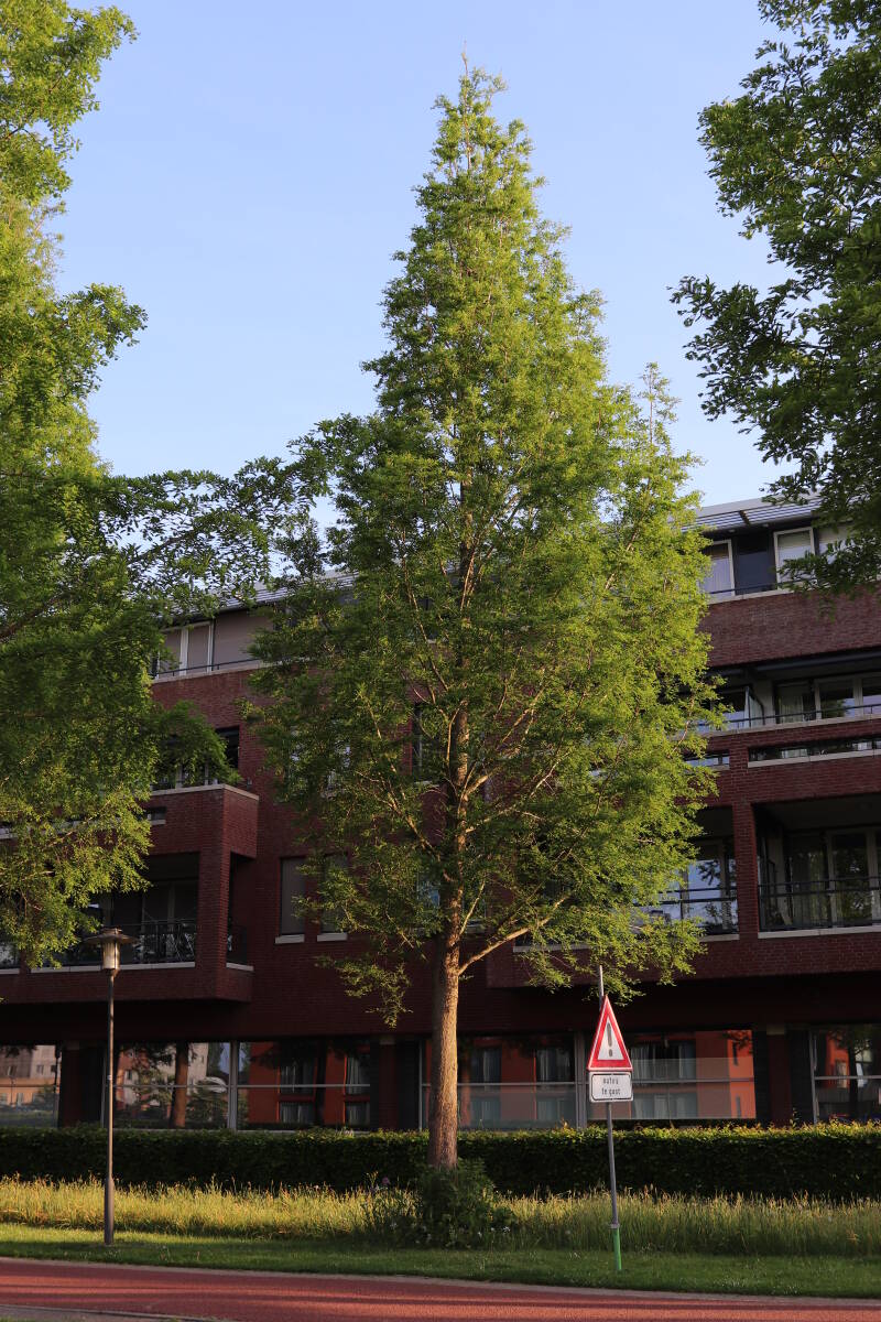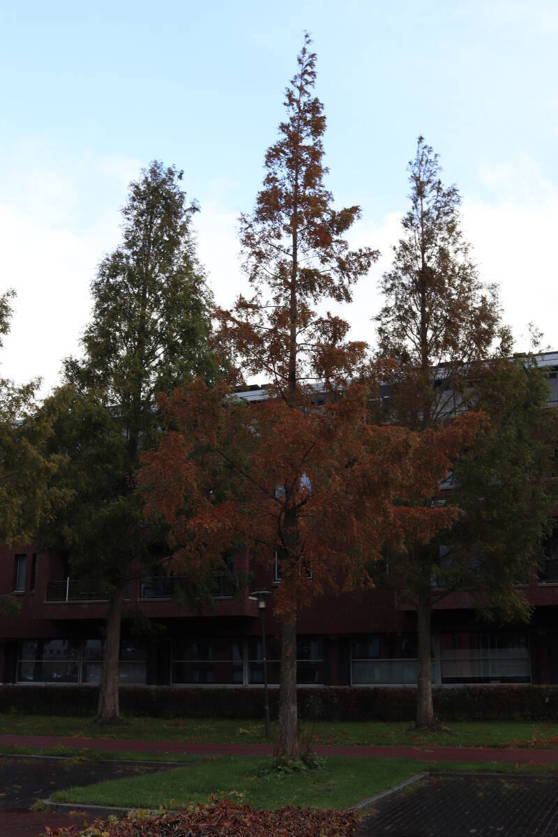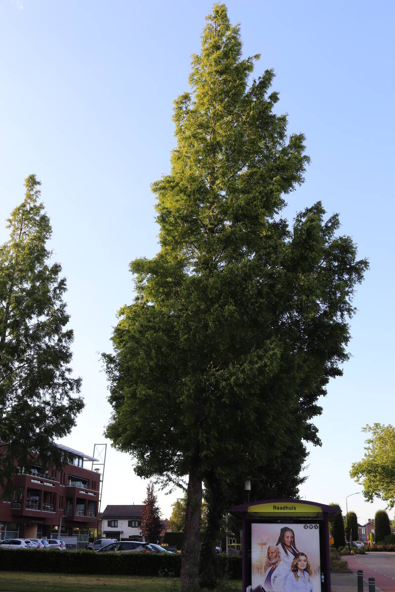 Deze Metasequoia glyptostroboides (Chinese moerascipres) is in 2006 aangeplant. Het is een bladverliezende coniferensoort die een hoogte kan bereiken van 20-30 meter en een kroondiameter tot 10 meter. De conifeer is een snelgroeiende soort, die windbestendig is en in natte grond geplant kan worden.