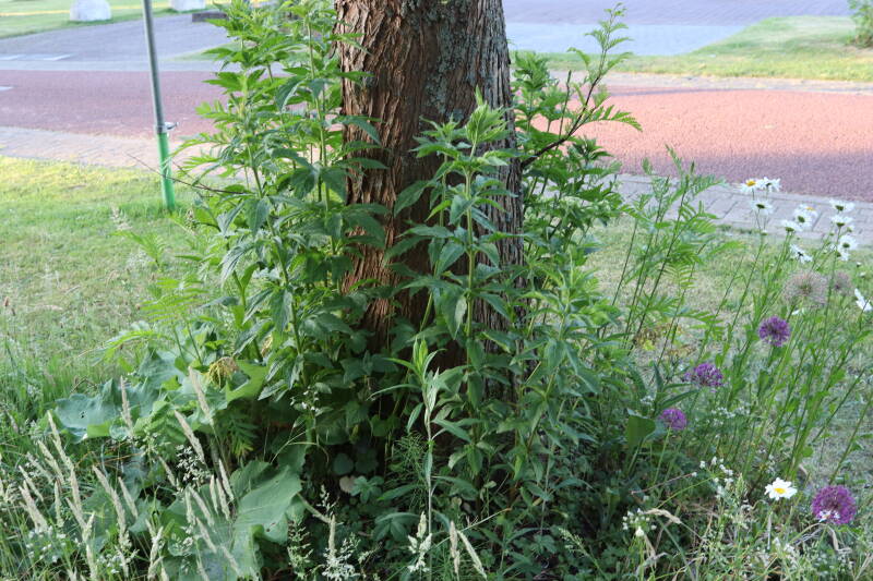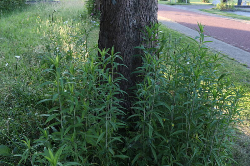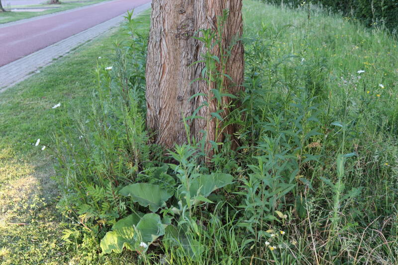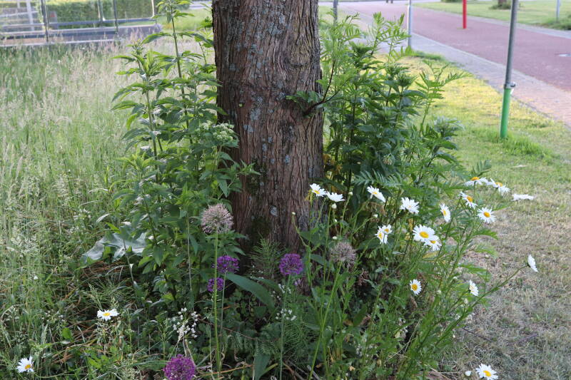 Vanaf halverwege het jaar 2022 tot het einde van 2024 is het aantal met kruidachtigen en bollen aangeplante boomspiegels gestaag uitgebreid van één tot vijftien locaties. Gedurende de afgelopen jaren is er voldoende tijd verstreken om te kunnen zien hoe alles zich heeft ontwikkeld, nadat de gemeente heeft besloten om de boomspiegels niet langer met regelmaat te blijven onderhouden. Er ontstaat als gevolg daarvan aanzienlijk minder maaischade meer aan de bomen, maar regelmatig komen de machines toch dichterbij dan is gewenst. Er zijn nog acht bomen in de omgeving waarbij de boomspiegels voornamelijk uit verschillende soorten grassen bestaat, maar bij mij wel het voornemen bestaat om deze ervoor het einde van 2025 bij te gaan betrekken. Ik had verwacht dat ik slechts bezig was het proces te versnellen, waarbij deze grassen op een natuurlijke wijze plaats zou gaan maken voor andere soorten planten, maar daar is bij deze laatste boomspiegels tot op heden nauwelijks sprake van geweest. Het gras blijft overheersen. Persoonlijk beschouw ik het als een groene woestijn met weinig variatie aan plantensoorten, waarbij de aangeplante boomspiegels er als kleine oases van uitbundig groeiende kruidachtige beplanting visueel uitspringen. Voor dit jaar wil ik met behulp van fotografie meer aandacht besteden aan de afzonderlijke boomspiegels en de variatie aan planten die erin voorkomen.