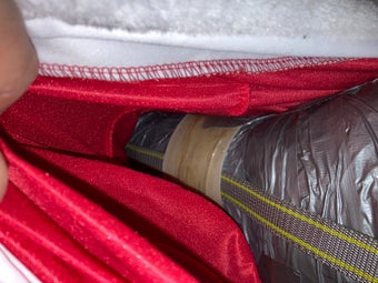 Nadat het lichaam vorm was gegeven is het in een laag krantenpapier gewikkeld voor ik pas echt los ging met de plakband en toen dit opraakte ook nog wat duct tape. Om de kerstman te kunnen ophangen aan de reling van het balkon heb ik twee, kleine spanbanden deels om het lichaam gewikkeld. Want waarom zou ik de kerstman neer zetten zoals ieder ander waarschijnlijk zou hebben gedaan als ik een ongeluk in scene kan zetten?