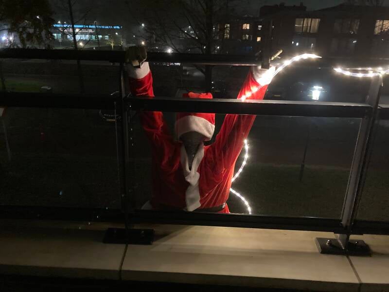 Voor de kerst van 2022 wilde ik een kerstman maken voor op het balkon. De lichtjes alleen rondom de reling kon in mijn beleving dit jaar wel iets extra's gebruiken. Het geraamte hiervoor verkreeg ik op mijn werk voor de gemeente Altena. Daar hadden we maanden hiervoor de melding ontvangen over een lichaam, wat achteraf een sexpop bleek te zijn zonder hoofd. Het 'vlees' had veel weg van siliconen en dat heb ik weg gesneden tot alleen het metalen geraamte ervan overbleef. Een wat luguber werk dat me meer het gevoel gaf een slager te zijn dan een creatieveling die in de pop andere mogelijkheden zag dan de vorige eigenaar. Het geraamte was bijzonder makkelijk op te bergen ondanks dat mijn berging beperkt van omvang is. Ik heb hiervoor een pak aangeschaft voor de kerstman.