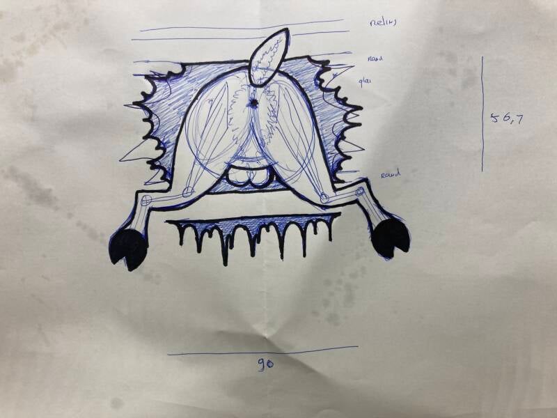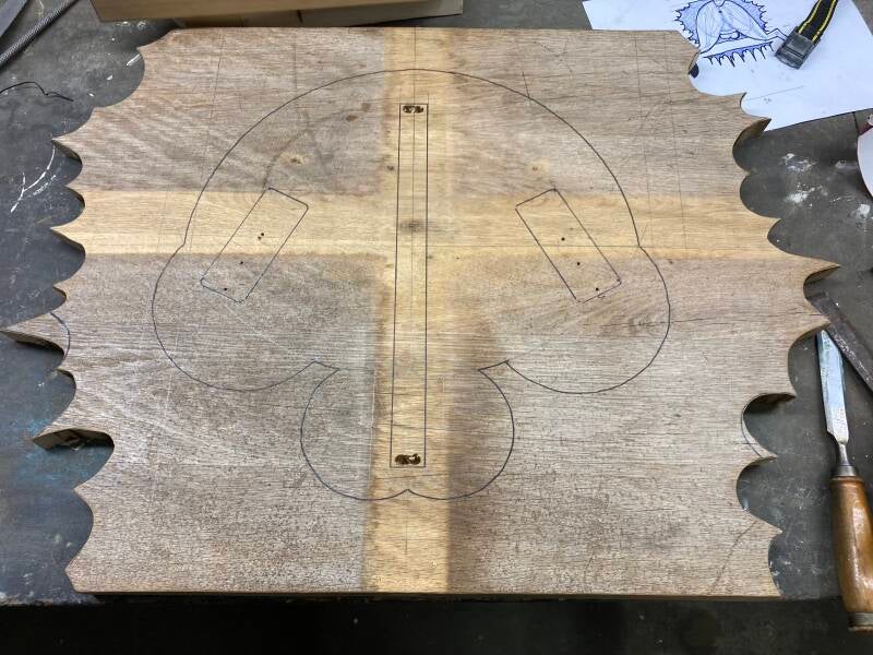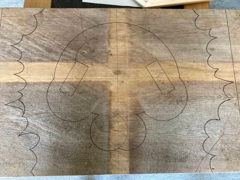 De schets van het idee dat ik eerder aan papier heb toe vertrouwd heb ik overgebracht op het hout.