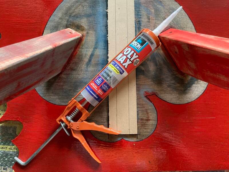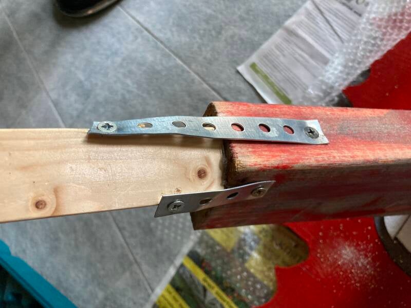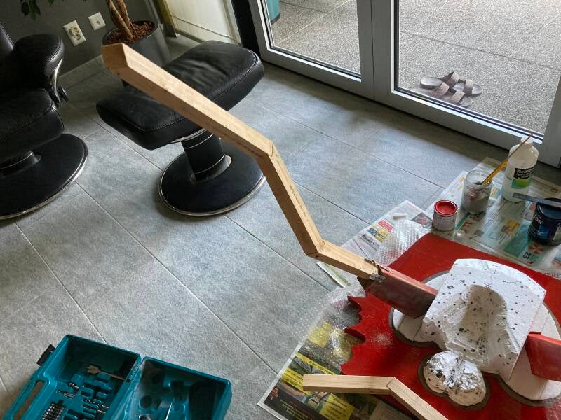 Voor de achterpoten heb ik met behulp van lijm en schroeven het hout vast gemaakt.
