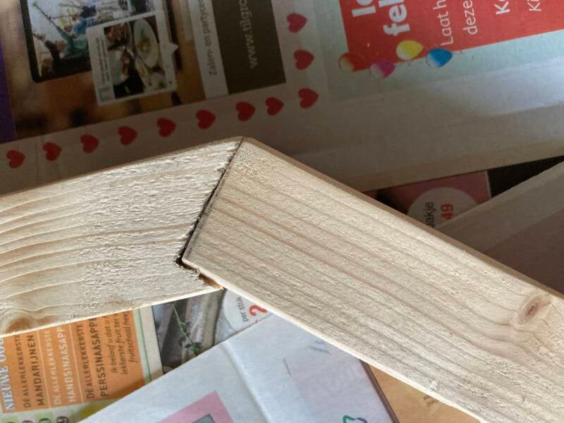In het hout is een sleuf gefreesd.
