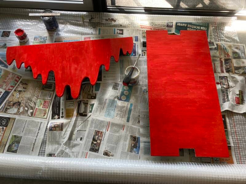 Om het project tegen de weerselementen te beschermen gaat het geheel geverfd worden. Eerst met grondverf en daarna de uiteindelijke kleuren.