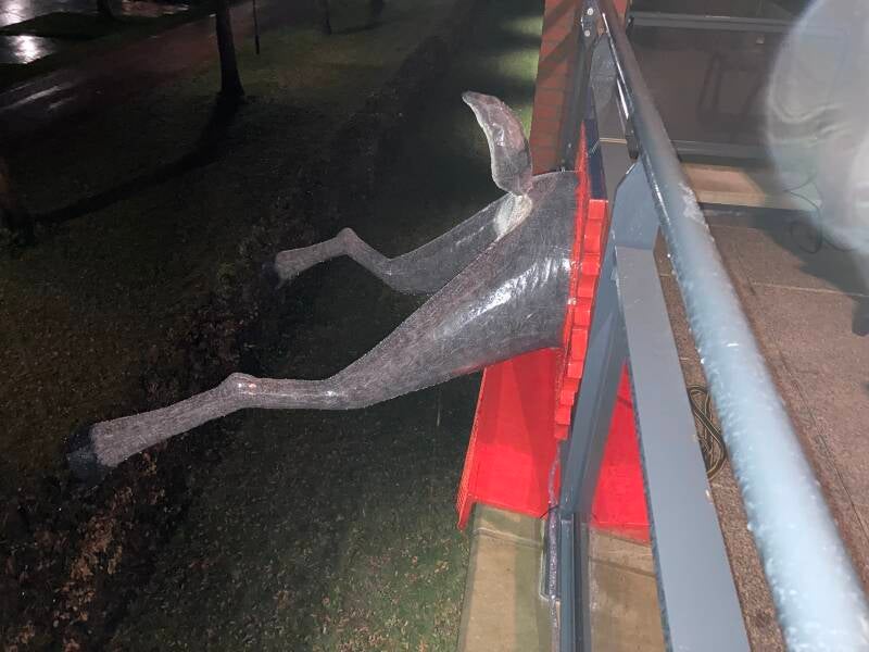 Voor de achterpoten van het rendier lijkt me een houten constructie om er stevigheid aan te verschaffen het meest geschikt.