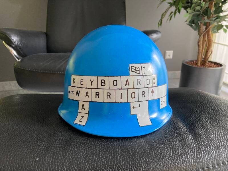 Met deze helm kan iedereen zich een Rambo voelen achter zijn of haar computer.