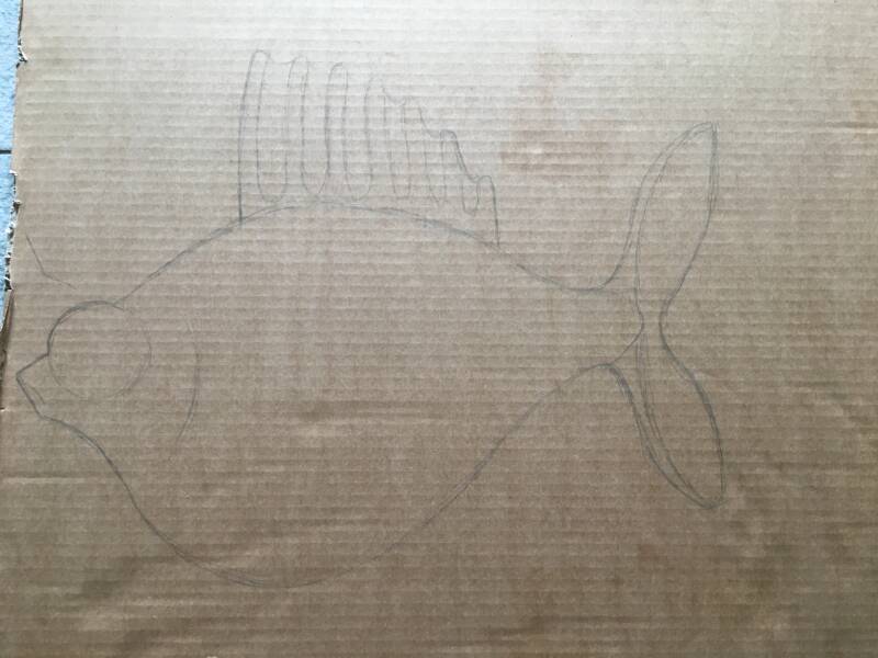 Ik heb krantenpapier en behanglijm gebruikt om de buitenkant van de vis te maken.