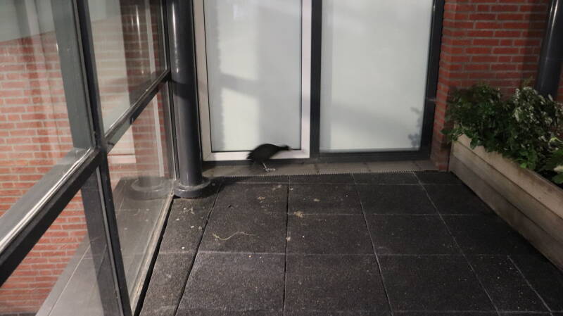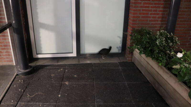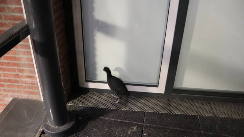 Het heeft helemaal niets met het voederen van vogels te maken, maar 2 oktober was er een meerkoet op het binnenplein van het appartementencomplex beland. Ik hoorde iets over het rooster voor mijn ramen heen en weer lopen. Nieuwsgierig geworden was ik het plein opgelopen om verbaast naar de verdwaalde vogel te kijken. Van alle soorten die ik in mijn woonomgeving had verwacht kwam in ieder geval geen meerkoet op het lijstje voor.