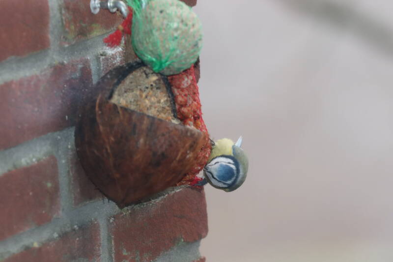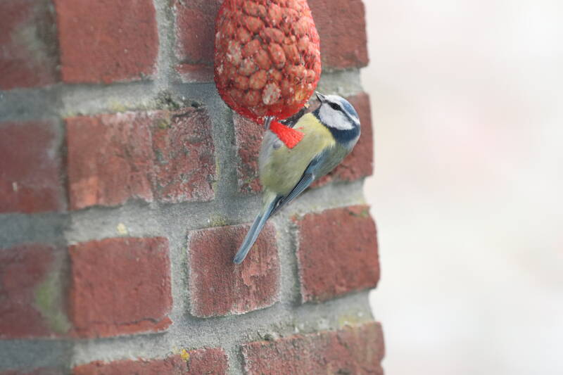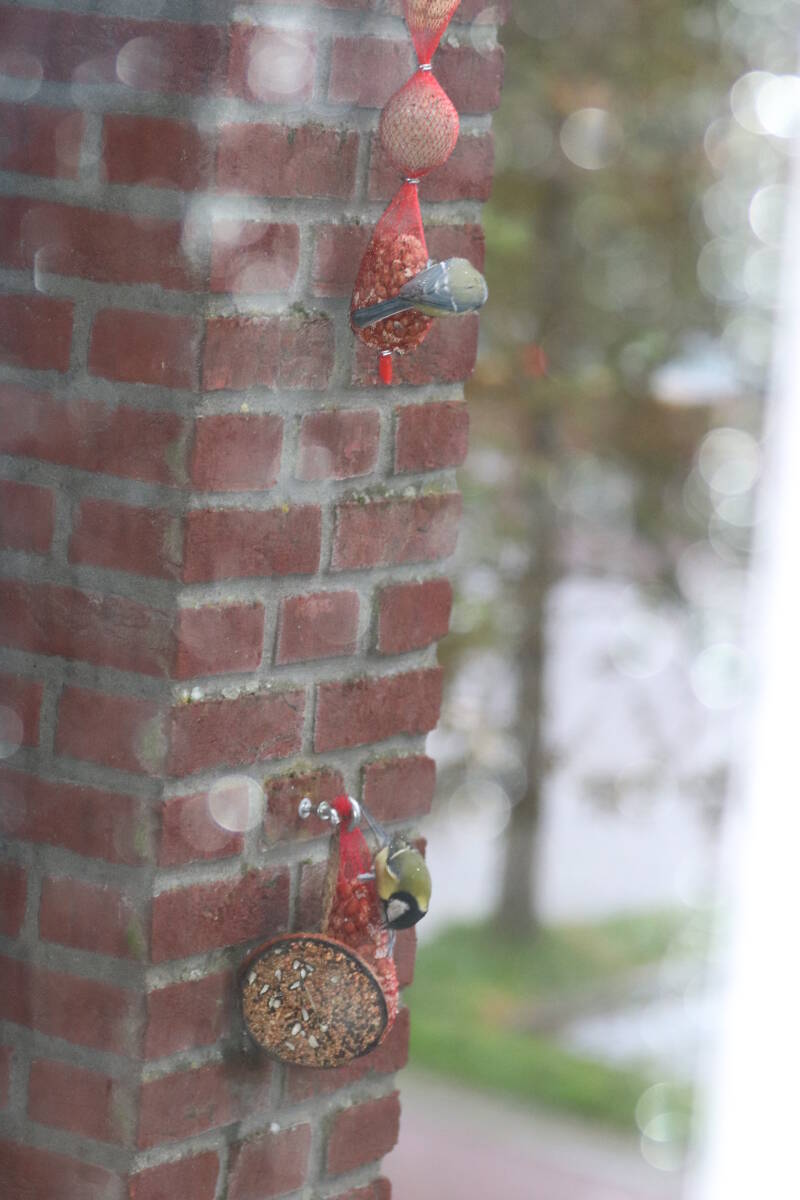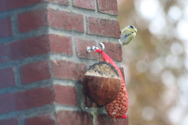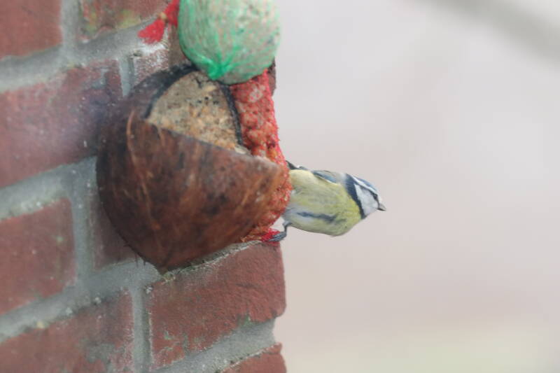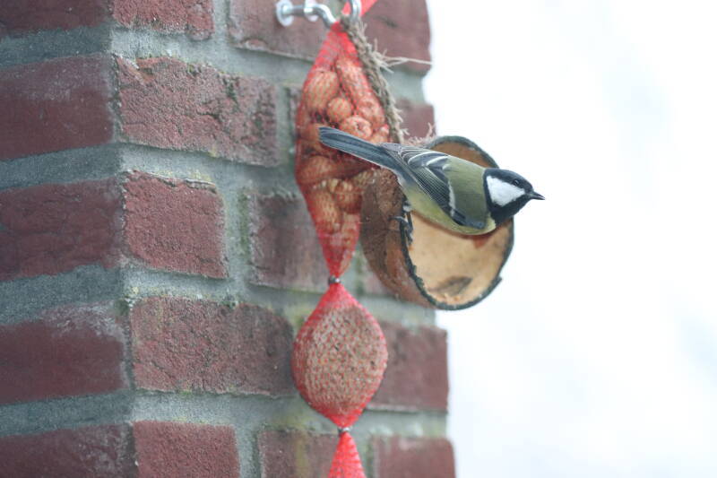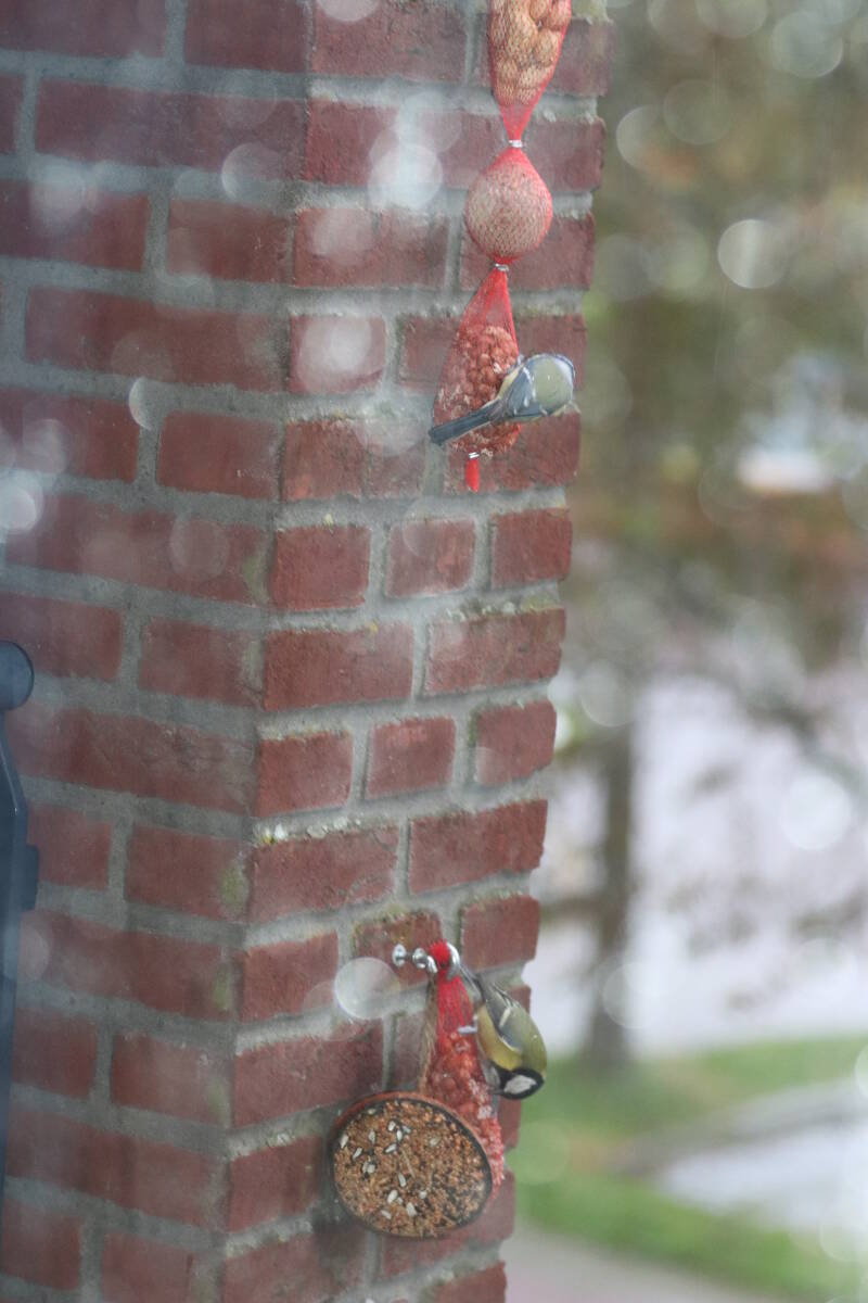 Op 19 november heeft de komende winter ons weer laten ervaren wat koud weer is. De gevoelstemperatuur daalde aanzienlijk. De vogels hebben echter geen andere keus dan op zoek te gaan naar voedsel. Onder deze omstandigheden heb ik de mezen nog niet eerder zo dicht bij elkaar zien eten.