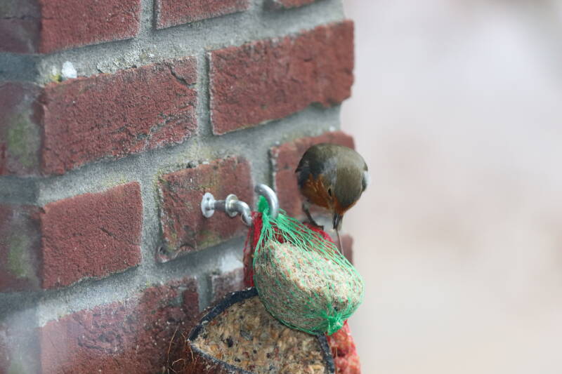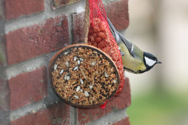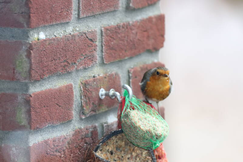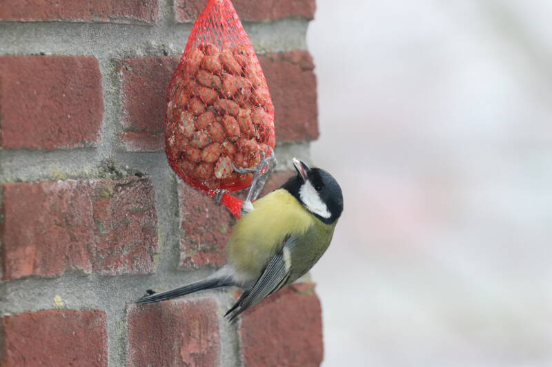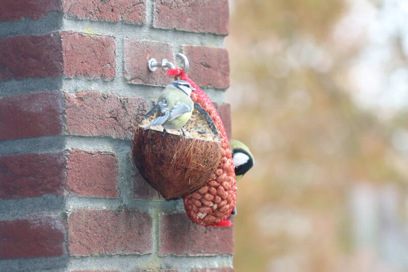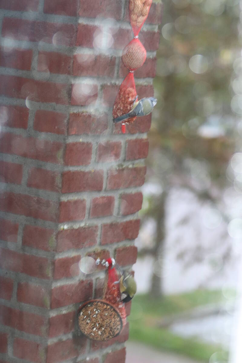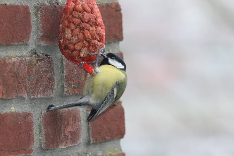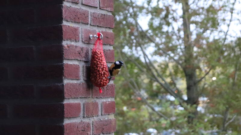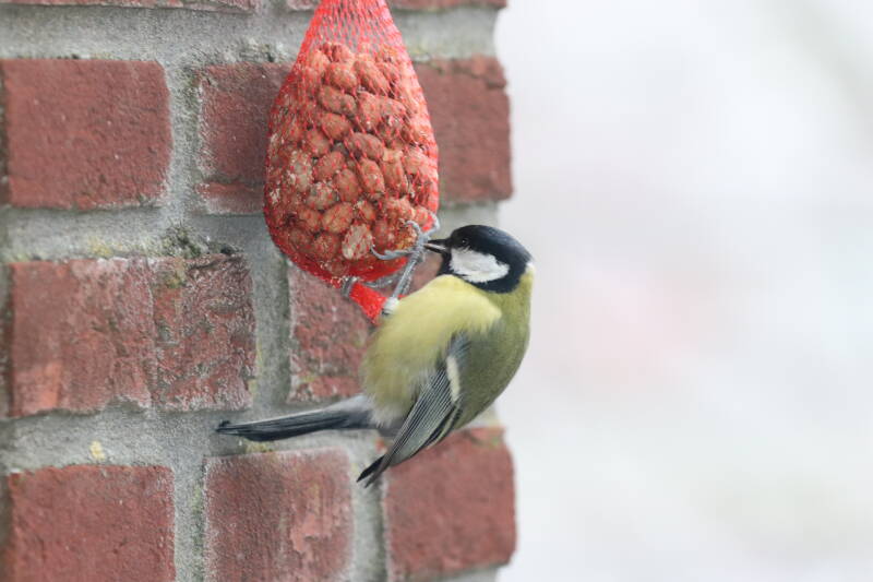 Op 19 november heeft de komende winter ons weer laten ervaren wat koud weer is. De gevoelstemperatuur daalde aanzienlijk. De vogels hebben echter geen andere keus dan op zoek te gaan naar voedsel. Onder deze omstandigheden heb ik de mezen nog niet eerder zo dicht bij elkaar zien eten.