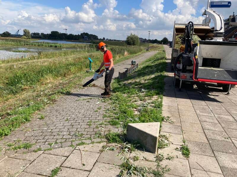 De keuze voor een nieuwe houtversnipperaar hebben we enige tijd geleden binnen de gemeente Altena grotendeels bij een groepje medewerkers op de spreekwoordelijke werkvloer gelegd. Het bomenteam is er meteen mee aan de slag gegaan. Het zijn deze mensen die ervaring hebben met diverse houtversnipperaars, weten wat er nodig om het werk goed te kunnen uitvoeren en er ook zelf mee moeten gaan werken. Over alles wordt dan nagedacht. Het heeft uiteindelijk tot de aanschaf van een wit gekleurde Greentec Cheetah houtversnipperaar geleid met een eigen kraan en een lier. Het is geleverd door A den Dekker & zn B.V. in de kleur van het toekomstig voertuigenpark van het Team Buitendienst en het bomenteam is er zeer over tevreden.