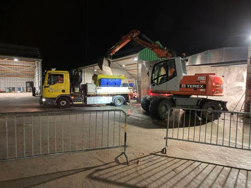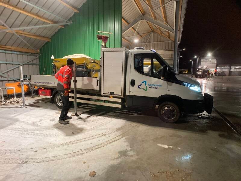 Een vroege start vandaag voor onze medewerkers van het Team Buitendienst en alle ingeschakelde aannemers. In alle vroegte werd alles gereed gemaakt om de doorgaande wegen weer van een laagje zout te voorzien voor het verkeer echt op gang komt en het weer licht is geworden.