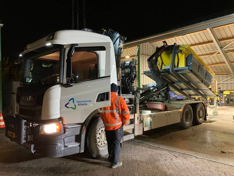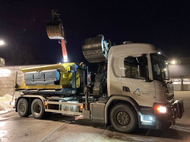 Medewerkers van het team Buitendienst zijn op kleine schaal al ingezet voor de gladheidsbestrijding binnen de Gemeente Altena. Op de werf Giessen zijn eerste happen uit de lading zout genomen door een kraan van Gebr. van Rijswijk.