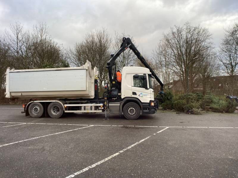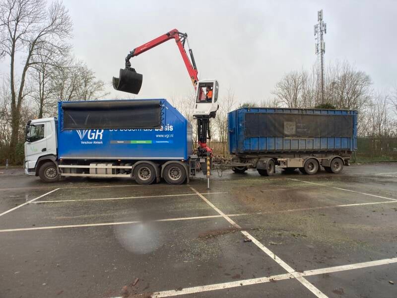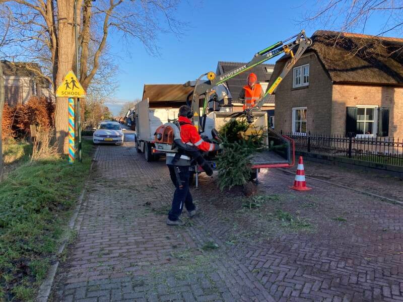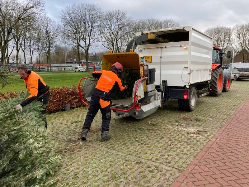 Medewerkers van het Team Buitendienst en een vrachtwagenchauffeur van VGR Equipment waren paraat om de kerstbomen af te voeren of te versnipperen om de locaties schoon achter te laten.