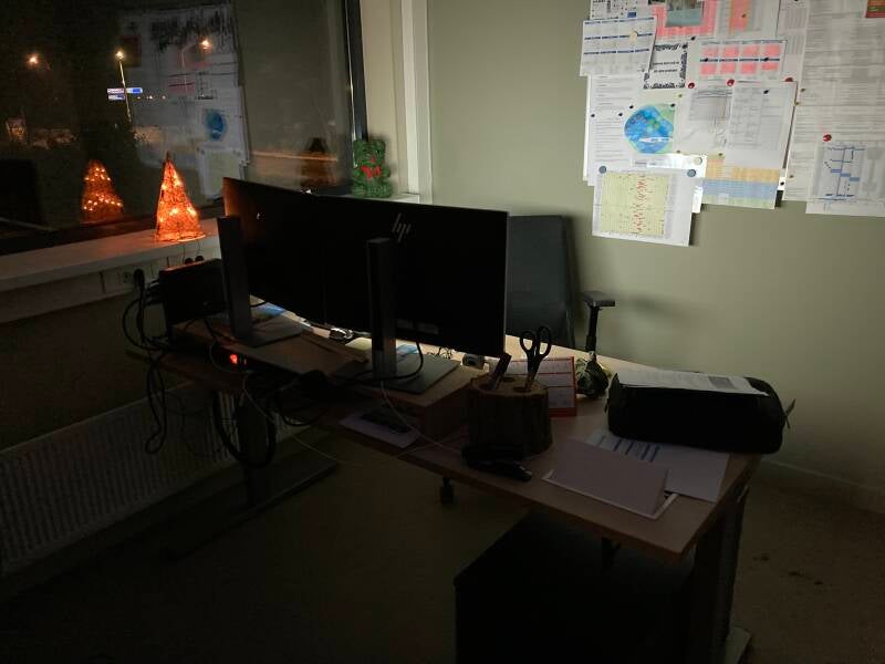 We werken wel met het concept van flexibele werkplekken, maar het voordeel van vroeg beginnen is dat er keuze in overvloed is en toch vaak eindig op dezelfde plek die ik me eigen heb gemaakt.